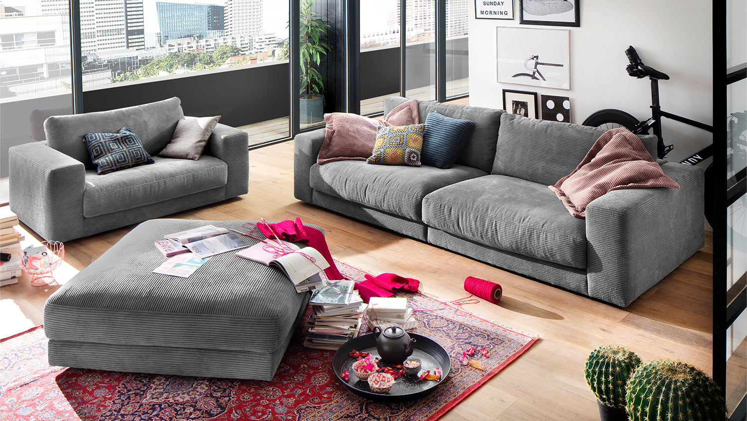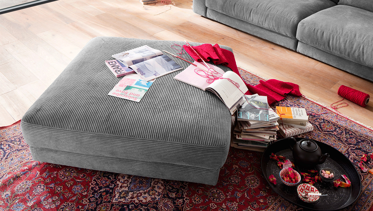 El Puf grande MADELINE de KAWOLA impresiona por su extraordinaria comodidad de asiento, que se consigue gracias a su tapizado extremadamente desenfadado y que invita a quedarse y relajarse. Su forma moderna y urbana confiere al taburete tapizado un aspecto inconfundible. Con su diseño atemporal, se integra perfectamente en cualquier ambiente y destaca en cualquier interior. Si desea dar un toque extraordinario a su salón, el Puf grande MADELINE es sin duda lo que necesita. El Puf también es el complemento perfecto para los sofás Pana de la gama MADELINE.