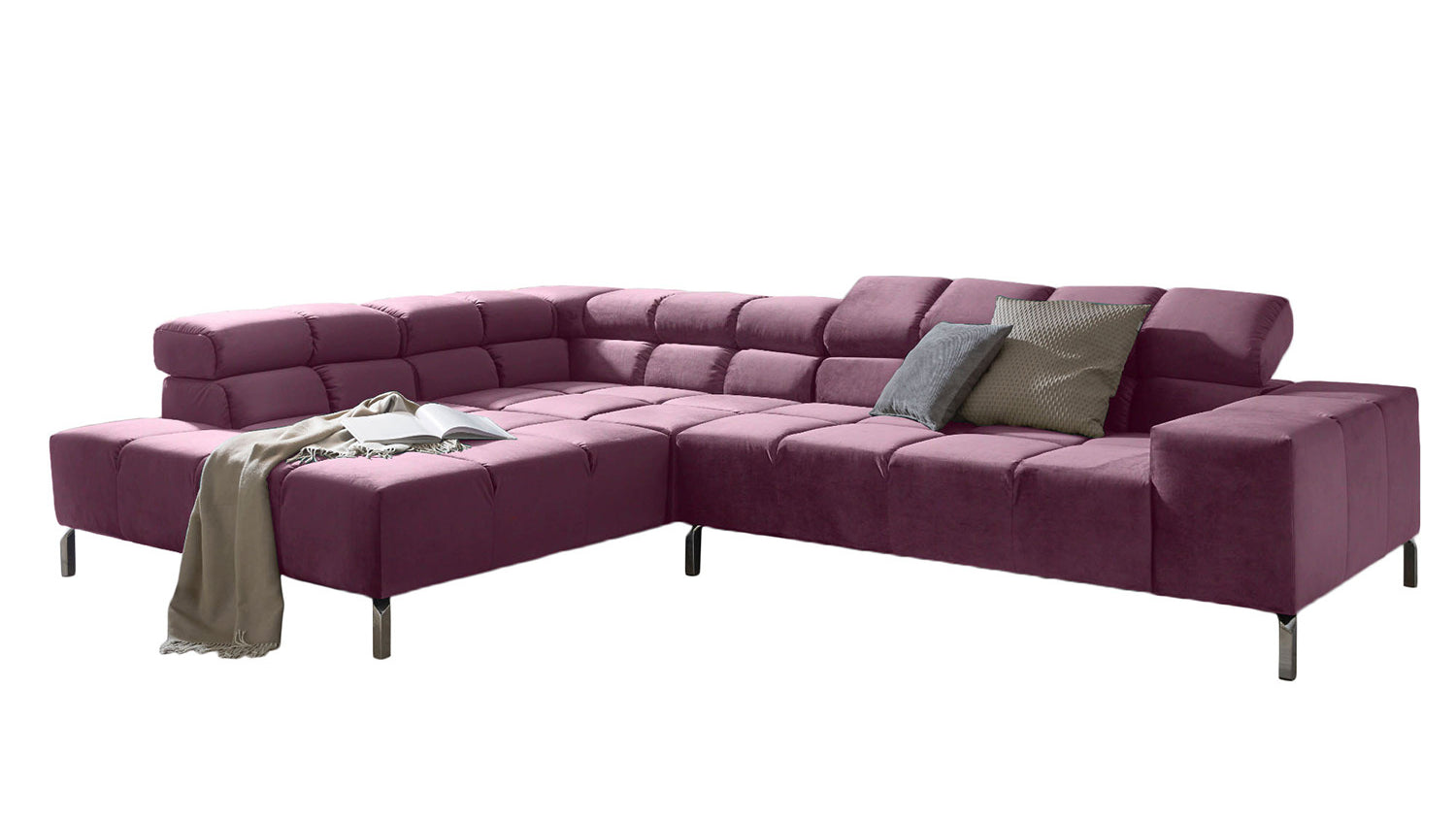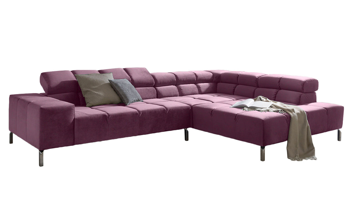 KAWOLA Sofá NELSON Sofá esquinero Terciopelo púrpura