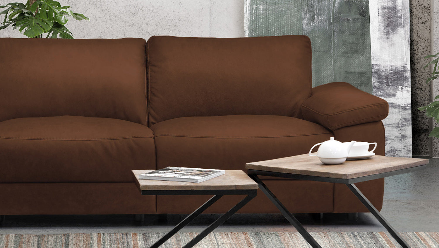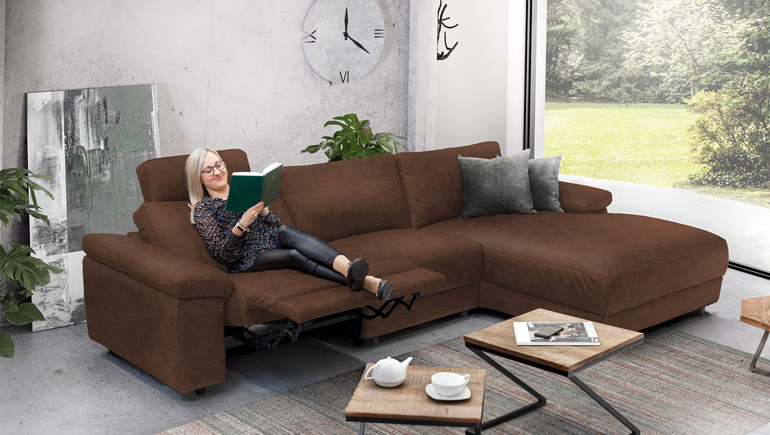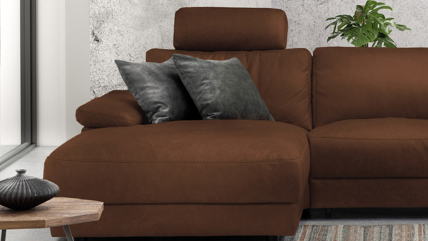 KAWOLA Sofá LOLA sofá esquinero XL cuero marrón con función relax motorizada