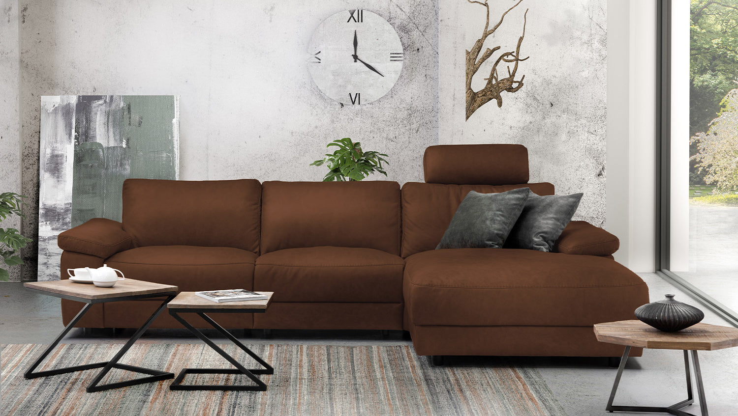 El sofá esquinero KAWOLA LOLA convence por su aspecto atemporal. Además, este mueble es muy funcional. El elemento de asiento derecho dispone de una función de reclinación motorizada que permite desplazar el respaldo hacia atrás y extender el reposapiés. Otro elemento destacado es el reposacabezas con aspecto de cojín, que también puede ajustarse a voluntad. El armazón es de madera maciza encolada y las superficies del asiento y el respaldo son muy cómodas gracias a su estructura de varias capas. La funda de cuero de alta calidad de estilo vintage es muy fácil de cuidar y confiere al sofá una elegancia clásica. Los pies de plástico empotrados con aspecto flotante crean un atractivo contraste. El acolchado muy desenfadado del asiento, el respaldo y los reposabrazos ofrece además una gran comodidad de asiento. El sofá esquinero LOLA se integra a la perfección en cualquier entorno y destaca en cualquier lugar.