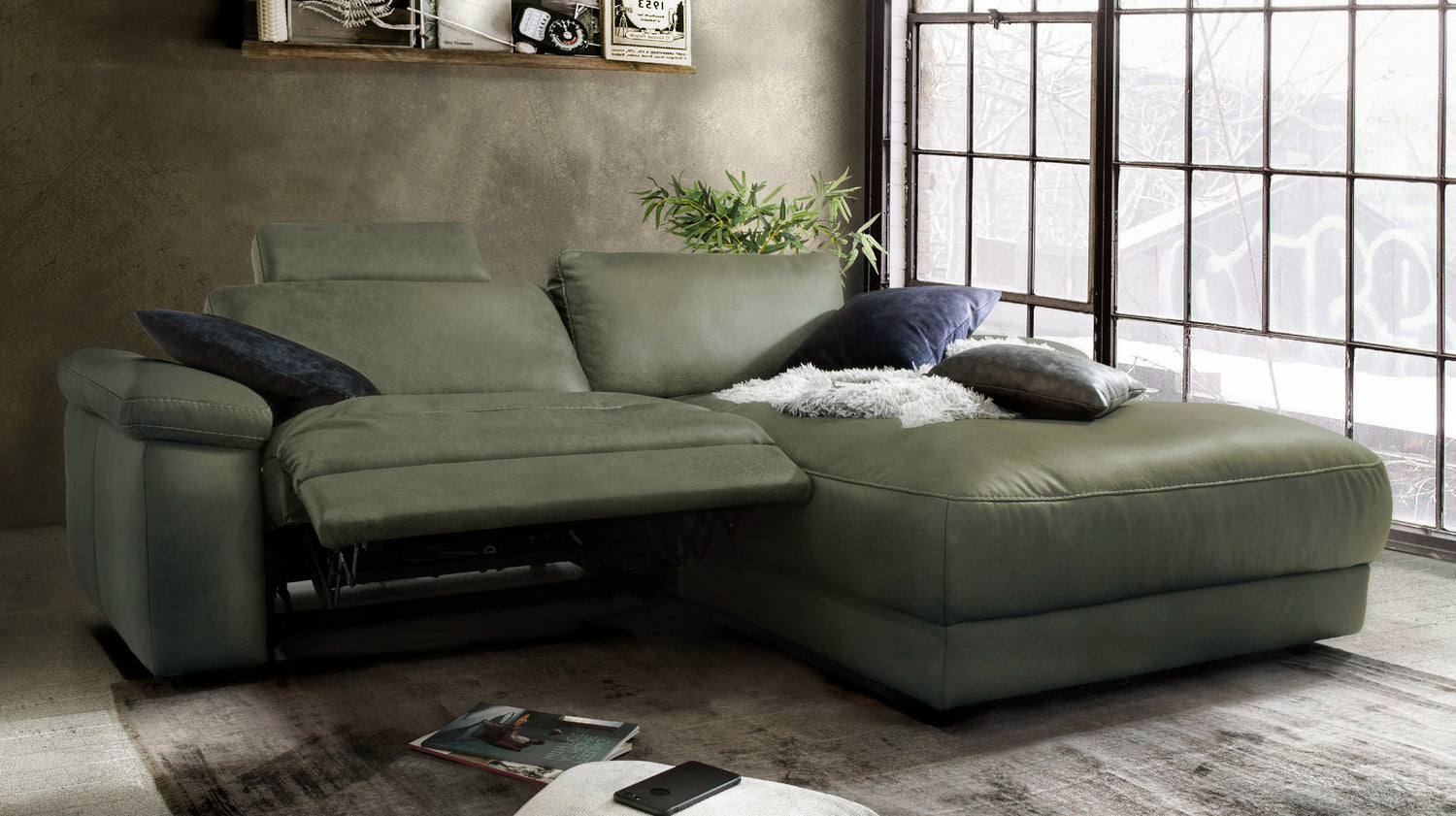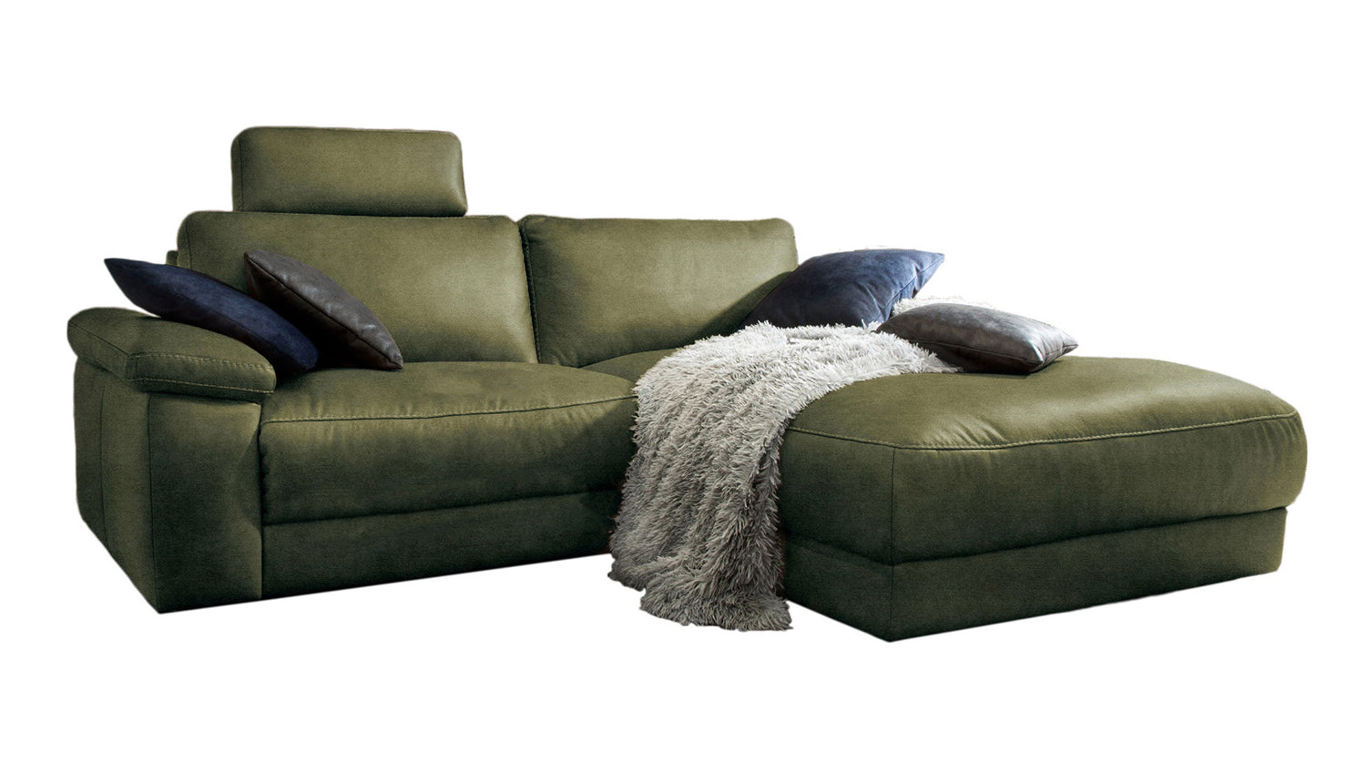 KAWOLA Sofá LOLA Sofá esquinero verde musgo con función relax motorizada varias fundas fundas