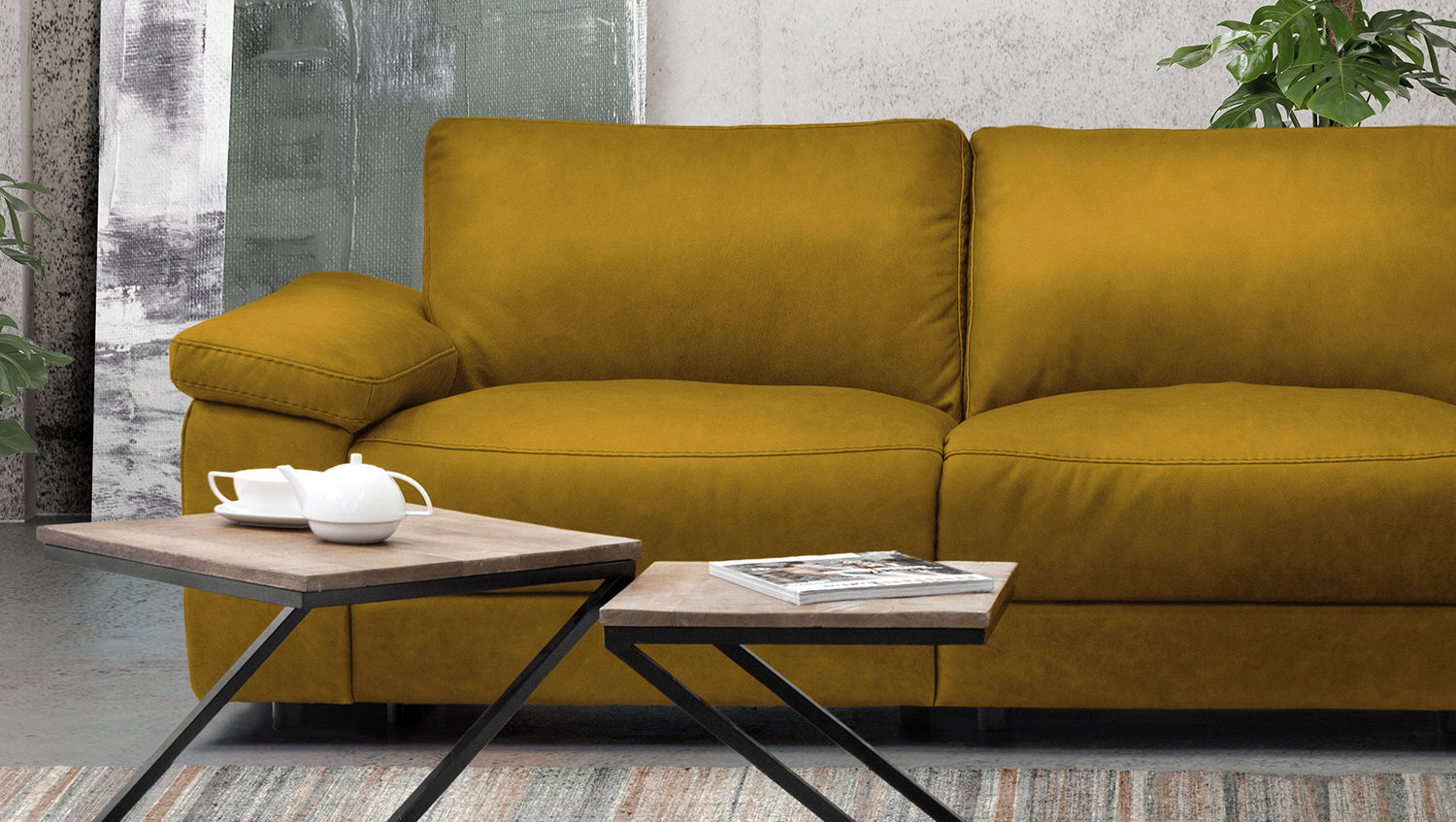 KAWOLA Sofá LOLA sofá esquinero XL de tela curry con función relax motorizada