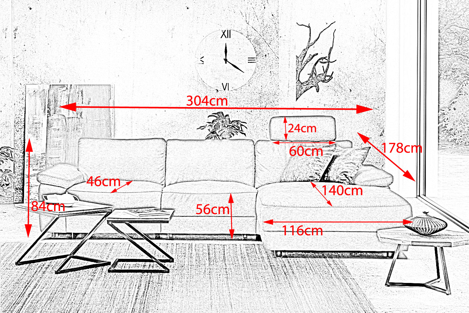 El sofá esquinero KAWOLA LOLA convence por su aspecto atemporal. Además, este mueble es muy funcional. El elemento de asiento derecho dispone de una función de reclinación motorizada que permite desplazar el respaldo hacia atrás y extender el reposapiés. Otro elemento destacado es el reposacabezas con aspecto de cojín, que también puede ajustarse a voluntad. El armazón es de madera maciza encolada y las superficies del asiento y el respaldo son muy cómodas gracias a su estructura de varias capas. La funda de tela de estilo vintage de alta calidad es muy fácil de cuidar y confiere al sofá una elegancia clásica. Los pies de plástico empotrados con aspecto flotante crean un atractivo contraste. El acolchado muy desenfadado del asiento, el respaldo y los reposabrazos ofrece además una gran comodidad de asiento. El sofá esquinero LOLA se integra a la perfección en cualquier entorno y destaca en cualquier lugar.