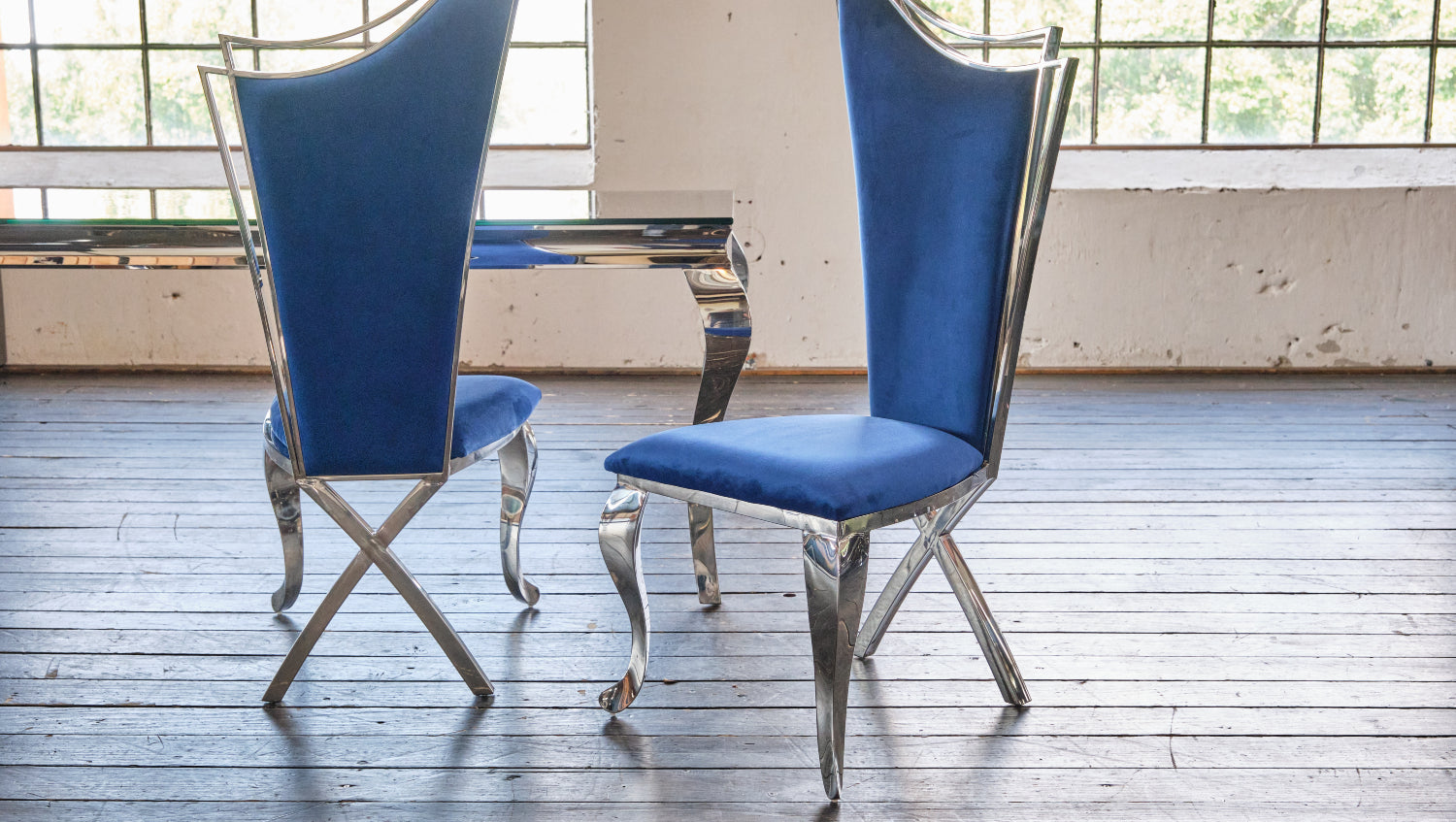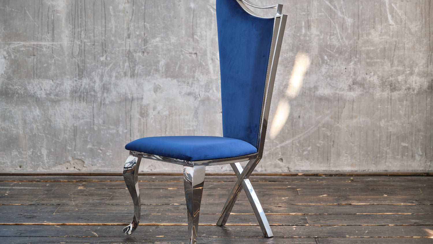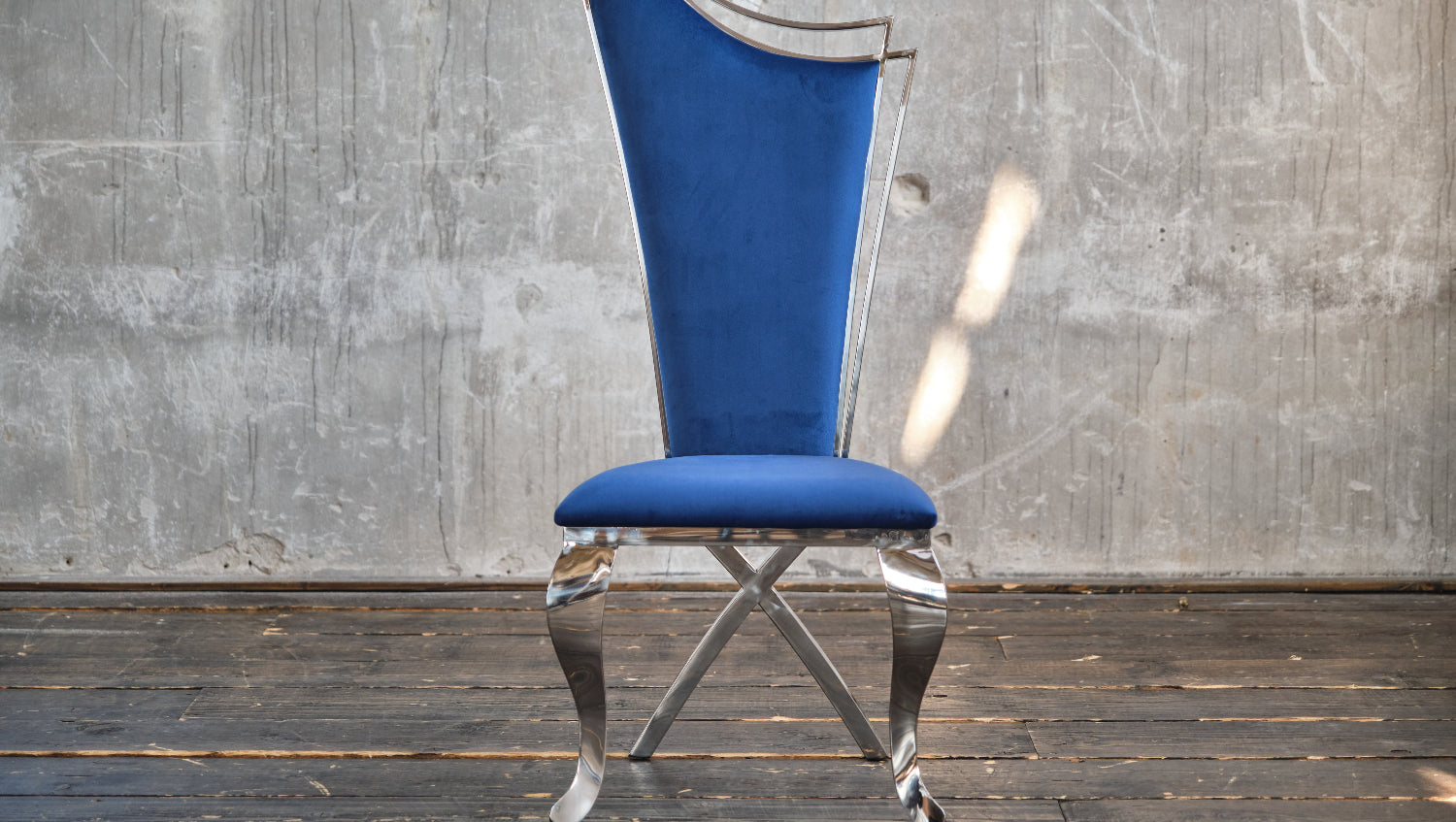 Silla KAWOLA silla de comedor AMALIA barroca azul terciopelo