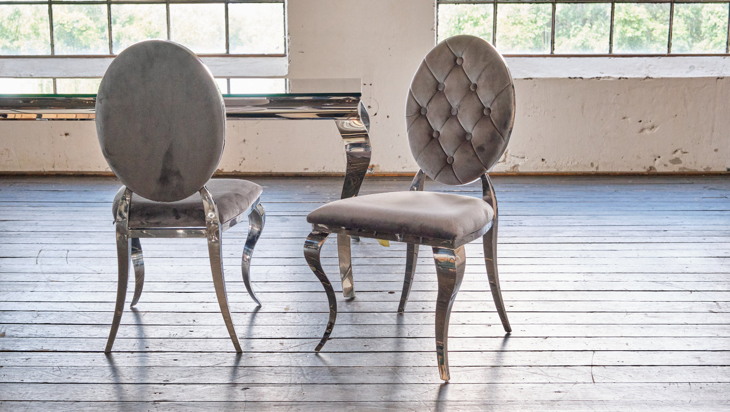 Silla KAWOLA silla de comedor LINDA barroca gris terciopelo