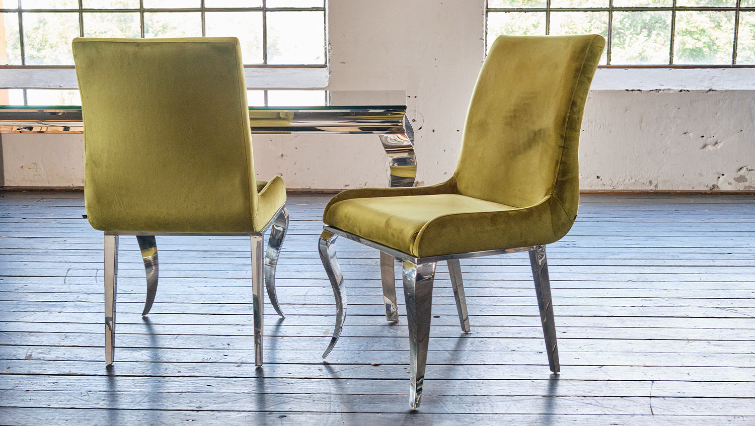 Esta silla es 2a oportunidad de una devolución de un cliente, que tiene ciertos defectos de menor importancia y por lo tanto es ofrecido por nosotros a un precio reducido. Los posibles defectos son: Arañazos en el armazón, marcas de presión, ligera suciedad y desviaciones de color en la tapicería, así como desgarros en la tela de los bajos. Por favor, eche un vistazo a las fotos de defectos directamente después de la foto principal. Sólo sirven para ilustrar posibles defectos. Se trata de imágenes de ejemplo generales y no representan el artículo en cuestión. El artículo no presenta necesariamente todos los defectos indicados. Las telas y los colores de los tapizados que aparecen en las imágenes de defectos tampoco se refieren a este artículo. La silla KAWOLA ALESSIA atrae todas las miradas con su elegante diseño barroco. Aquí podrá reclinarse cómodamente y cenar con estilo. El tapizado de terciopelo tiene un acabado de alta calidad y las extravagantes patas de acero inoxidable le dan a la silla un aspecto especial. Con su elegante diseño, la silla ALESSIA crea un ambiente exclusivo.