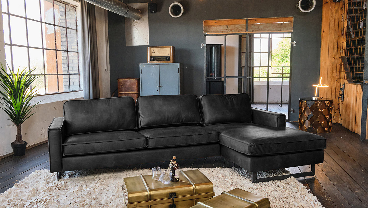 El sofá VILNIUS de KAWOLA ofrece todos los puntos fuertes de un sofá de piel clásico y mucho más. La funda de tejido de fibra de piel es una alternativa innovadora a la piel auténtica: está fabricada con fibras de piel recicladas que se combinan con aglutinantes naturales y fibras textiles. El resultado es un material resistente y de alta calidad con un aspecto de auténtica piel y un tacto agradablemente suave. El tejido de fibra de cuero es de fácil cuidado, dimensionalmente estable y transpirable, mientras que el sólido armazón de madera garantiza una extrema robustez y un tapizado cómodo y desenfadado para disfrutar de un asiento mullido. A pesar de sus grandes dimensiones, el sofá esquinero se puede colocar de forma flexible en cualquier habitación, convirtiéndolo en un punto de atracción visual en todo momento, mientras que los pies metálicos de aspecto industrial proporcionan un bello contraste con el cuerpo del sofá. En definitiva, el sofá KAWOLA VILNIUS creará un ambiente maravillosamente acogedor en cualquier ocasión.