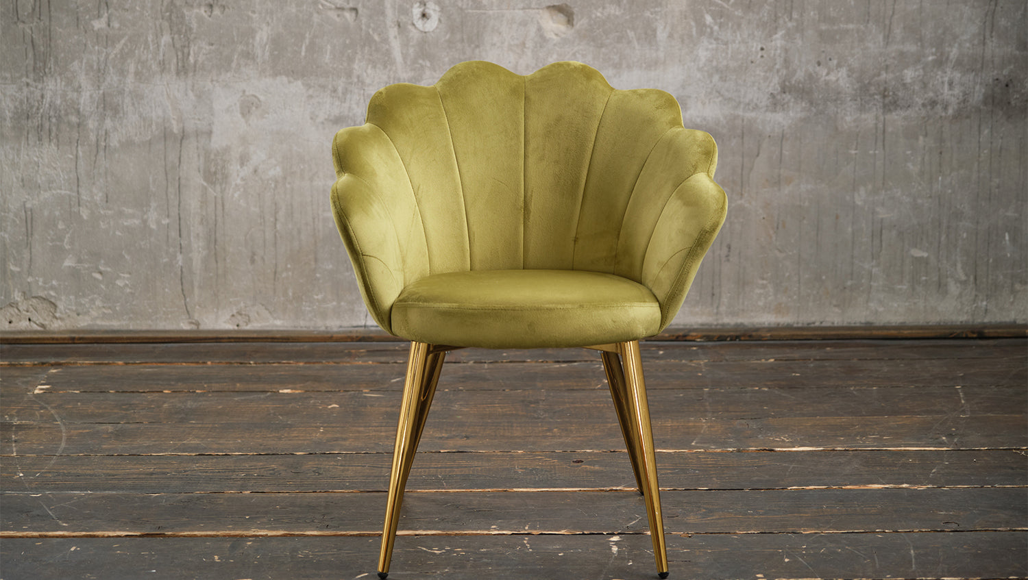 B-Ware_KAWOLA Silla de comedor CARLA Base de terciopelo verde dorado