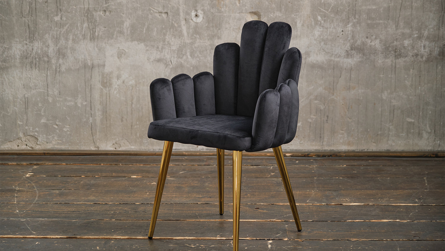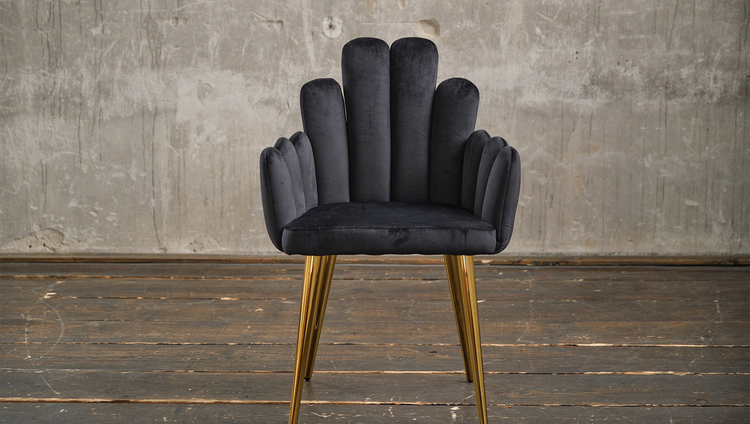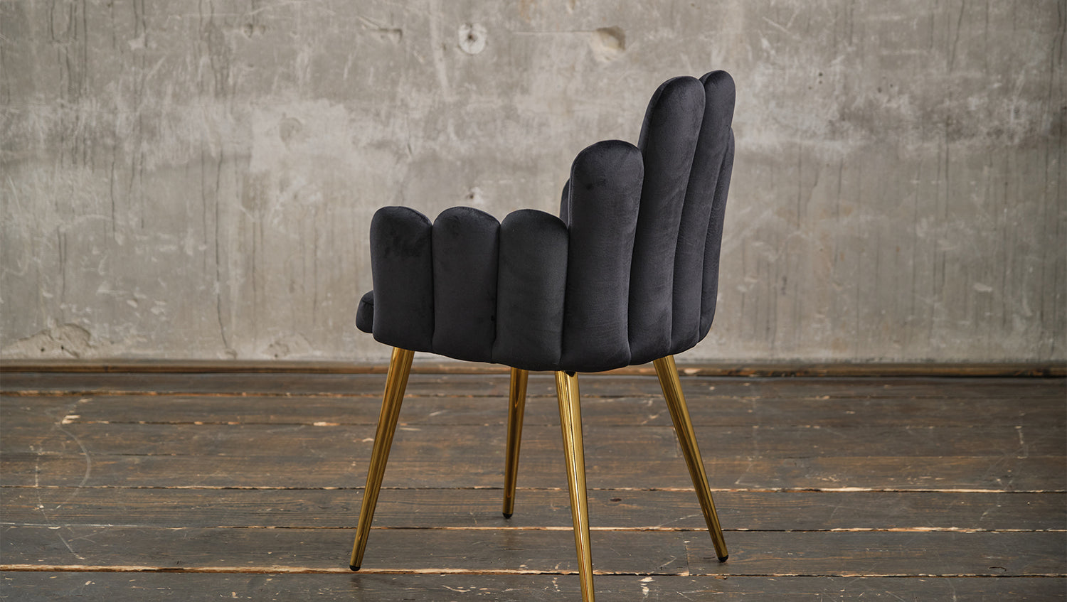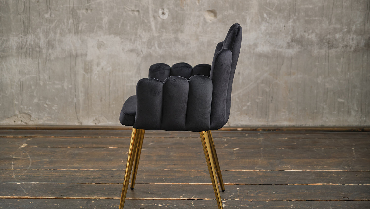 Silla KAWOLA FREJA silla de comedor terciopelo negro pie dorado
