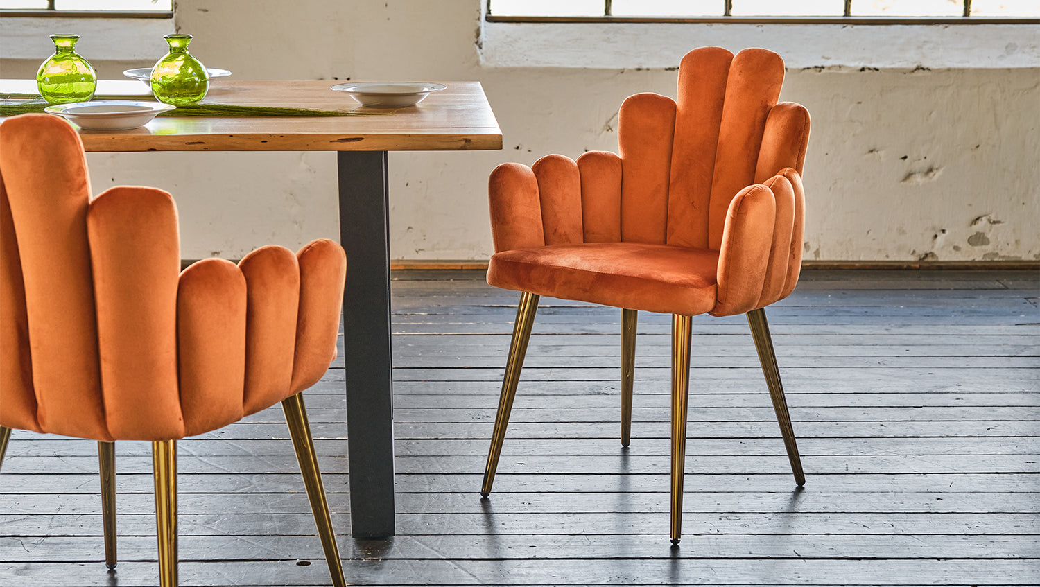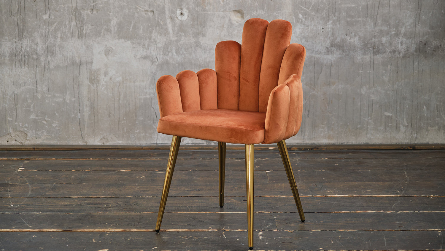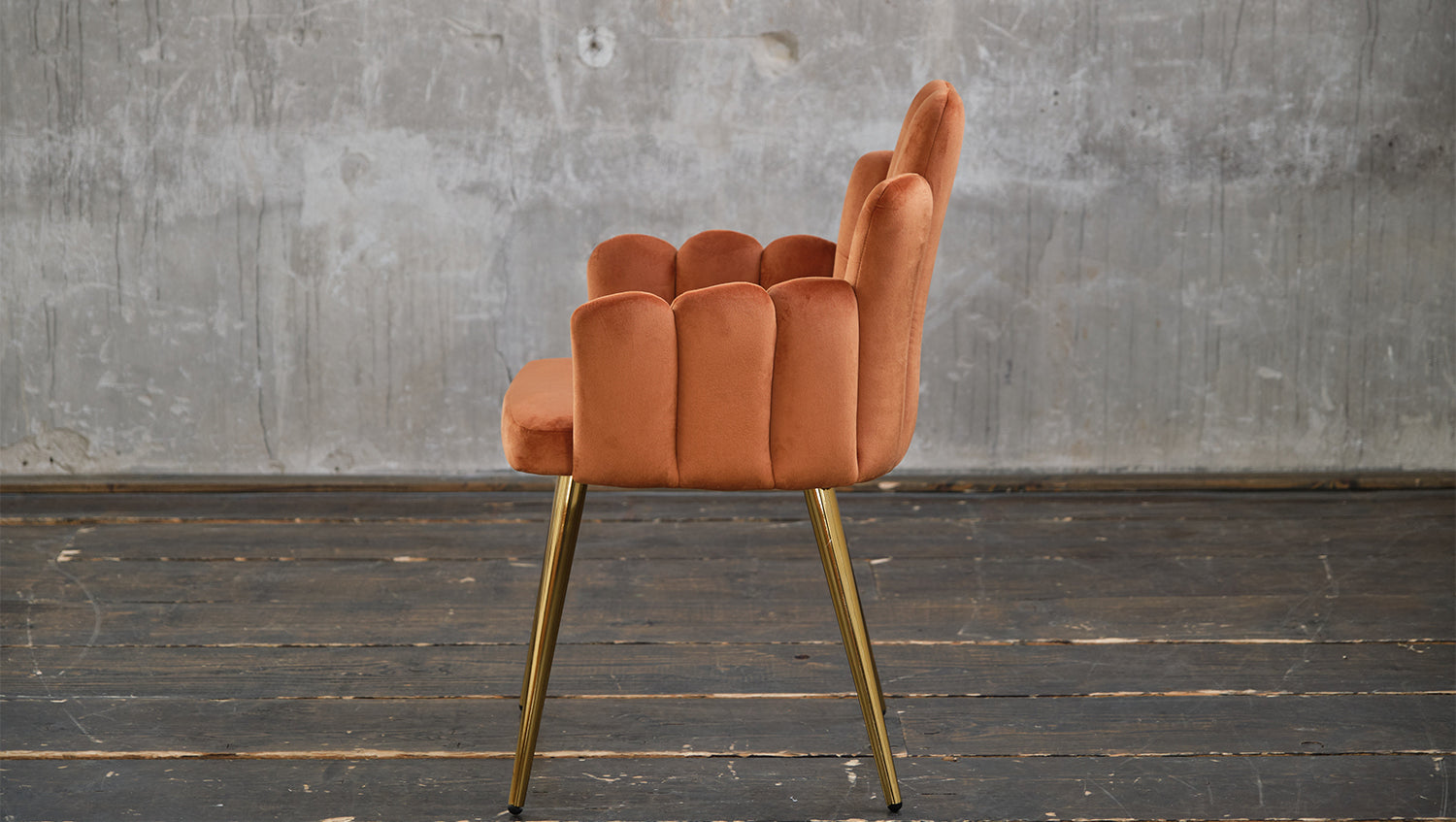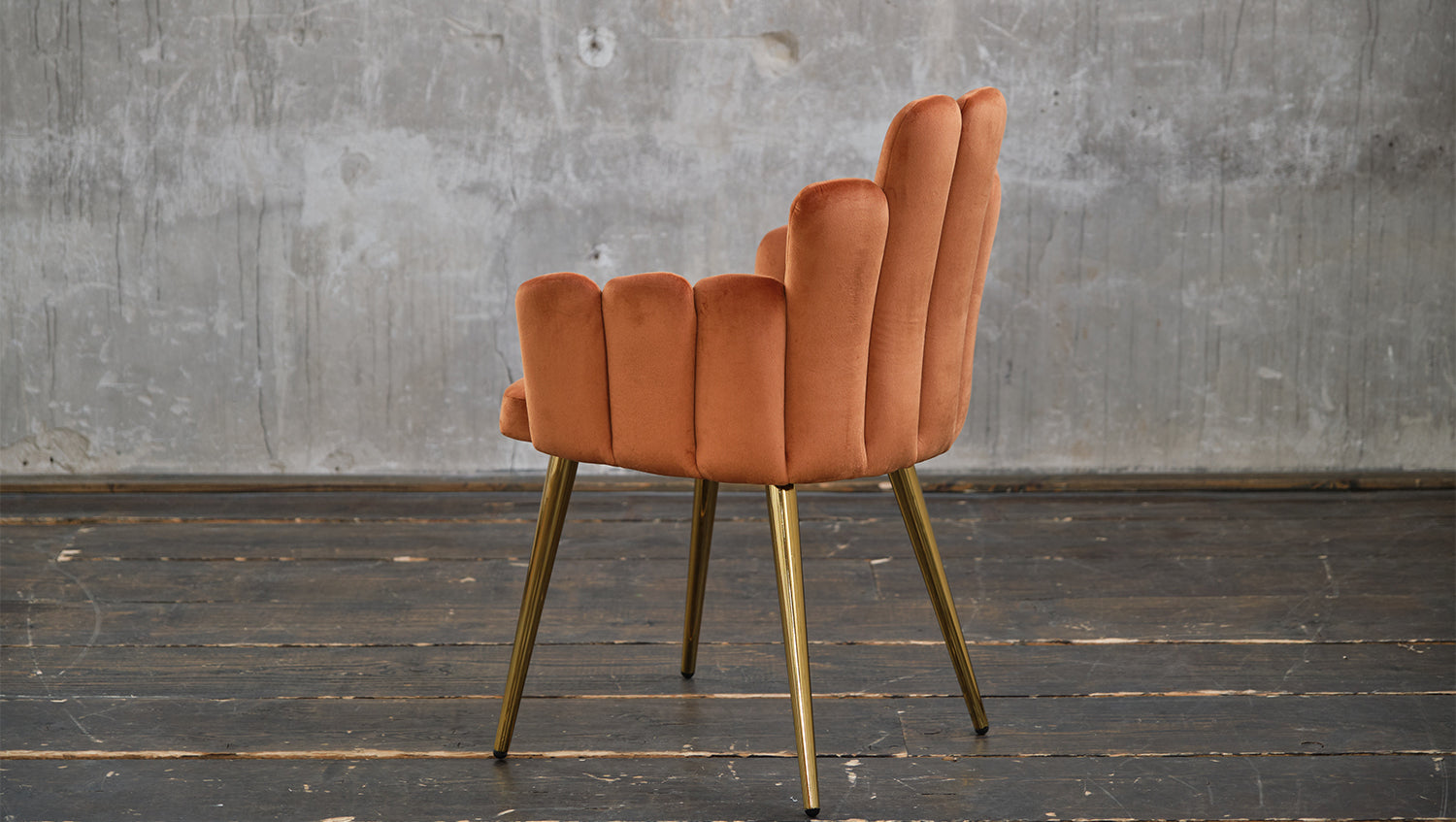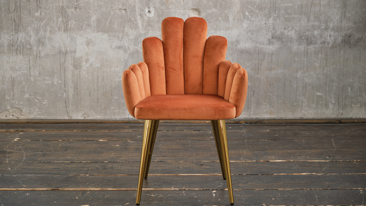 Silla KAWOLA FREJA silla de comedor terciopelo naranja pie dorado
