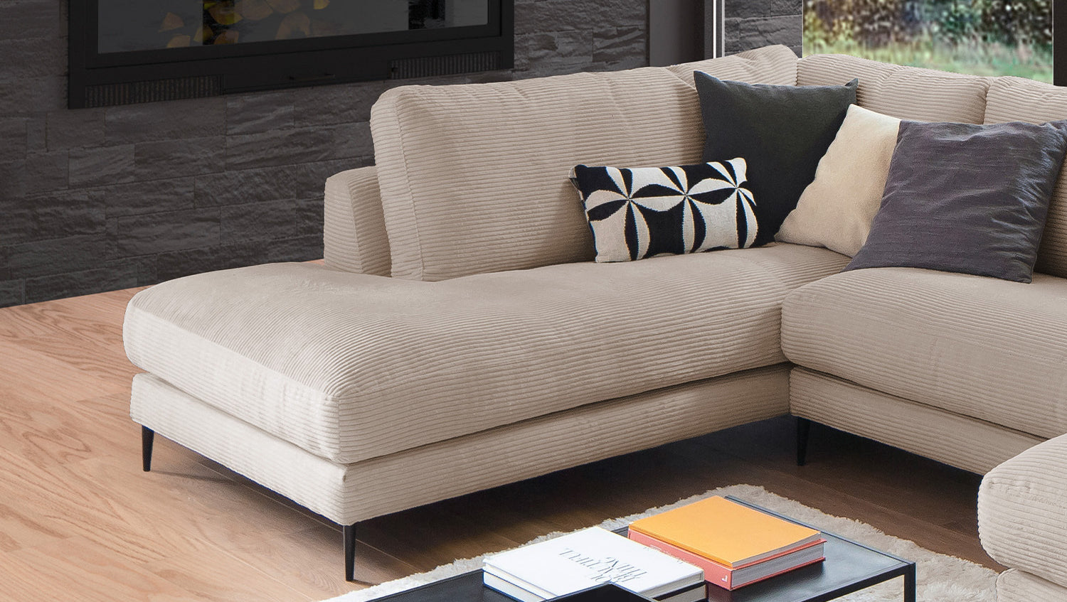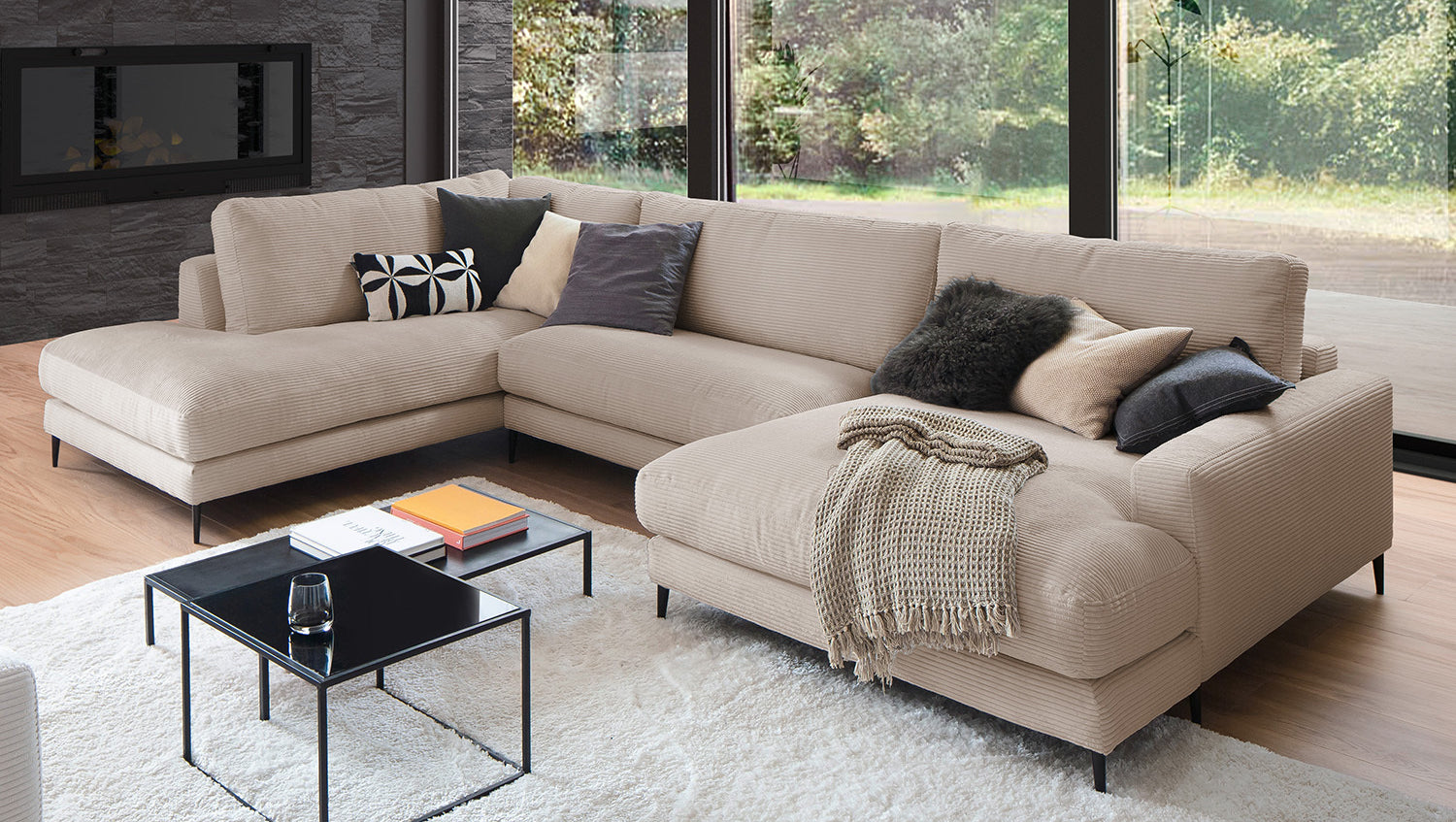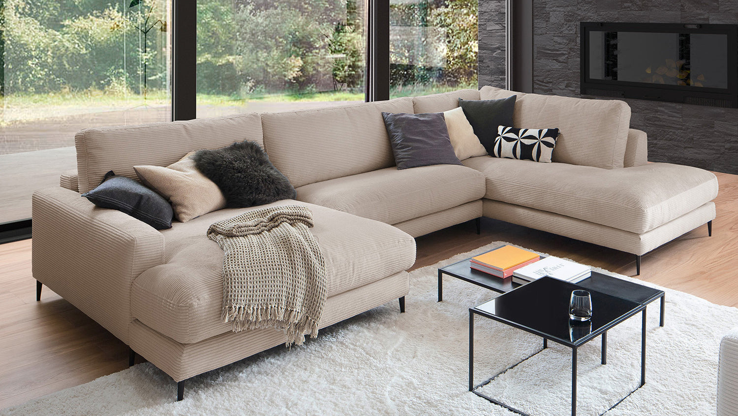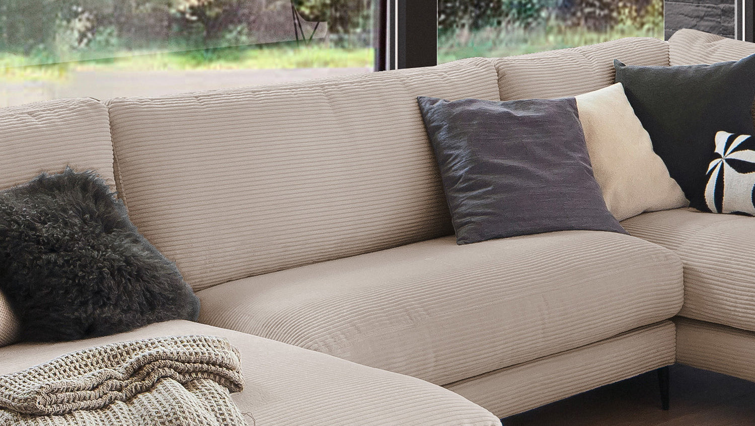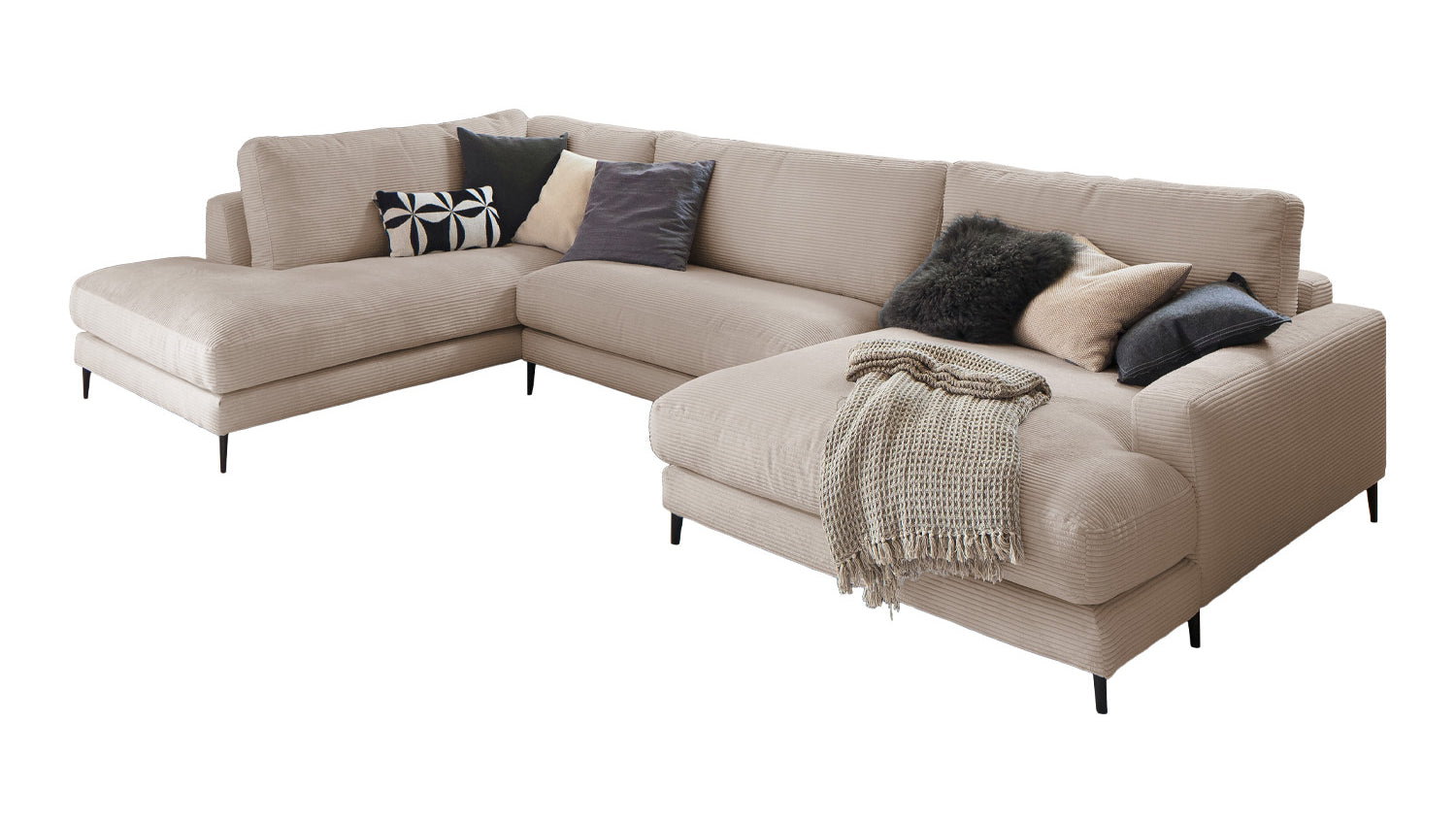 El Sofá en forma de U KAWOLA CARA combina el diseño clásico con la practicidad moderna y se integra a la perfección en cualquier interior. Sus formas suaves y la moderna funda de tela de pana confieren al sofá una elegancia atemporal. La compleja tapicería de 3 niveles garantiza la máxima comodidad de asiento y se adapta a la forma del cuerpo gracias a su estructura desenfadada. El sofá también está equipado con cojines de cámara de alta calidad. Para evitar que el material de relleno se comprima, estos Cojines respaldo deben sacudirse después de cada uso. Sea cual sea la ocasión, ¡todo el mundo encontrará un lugar para relajarse en el sofá CARA!