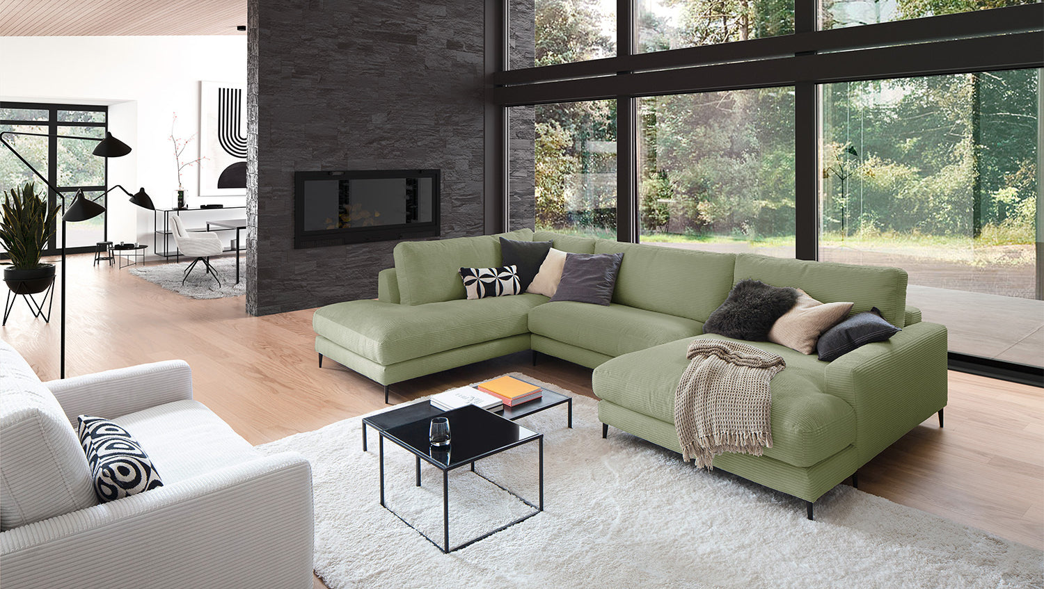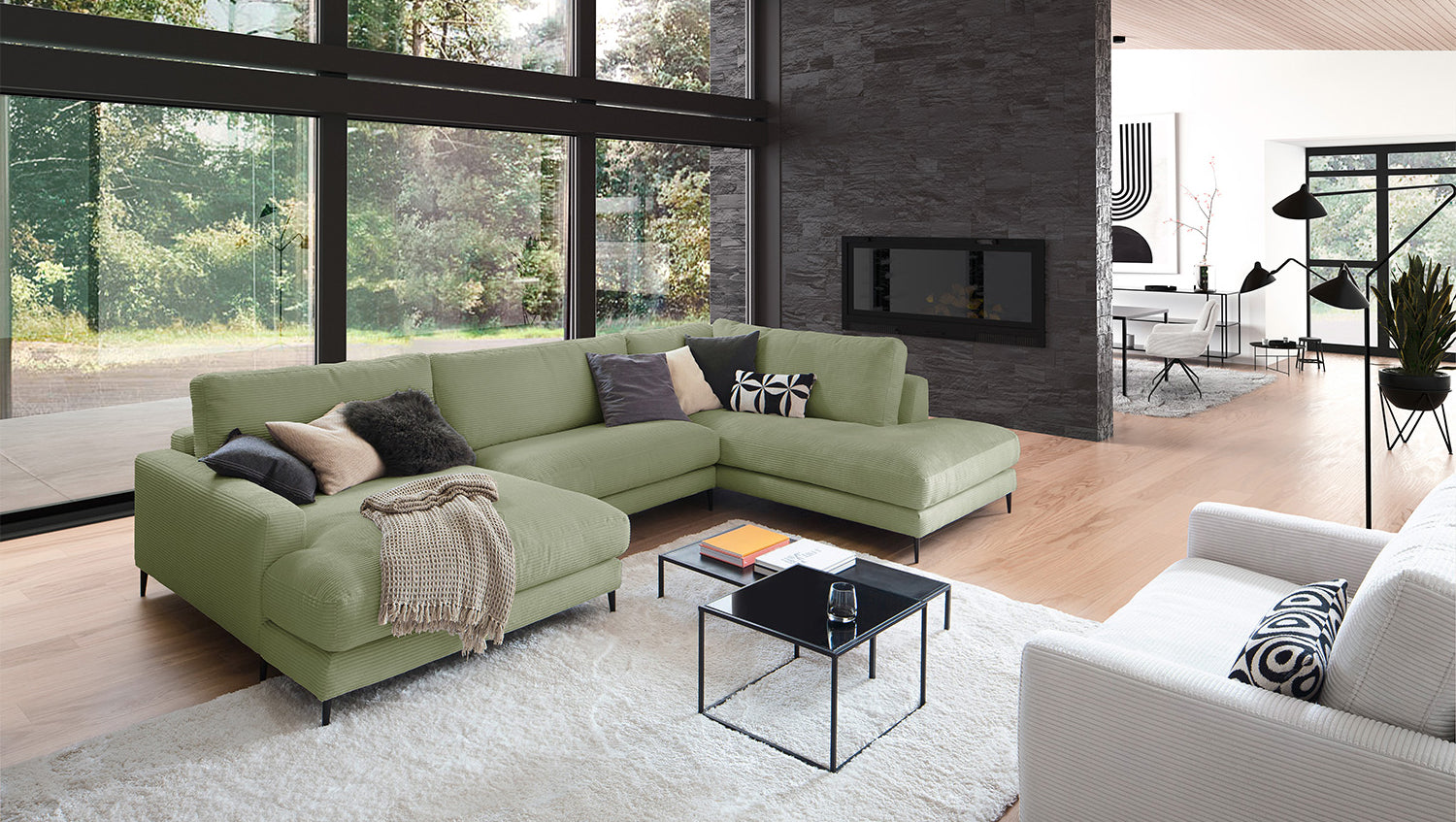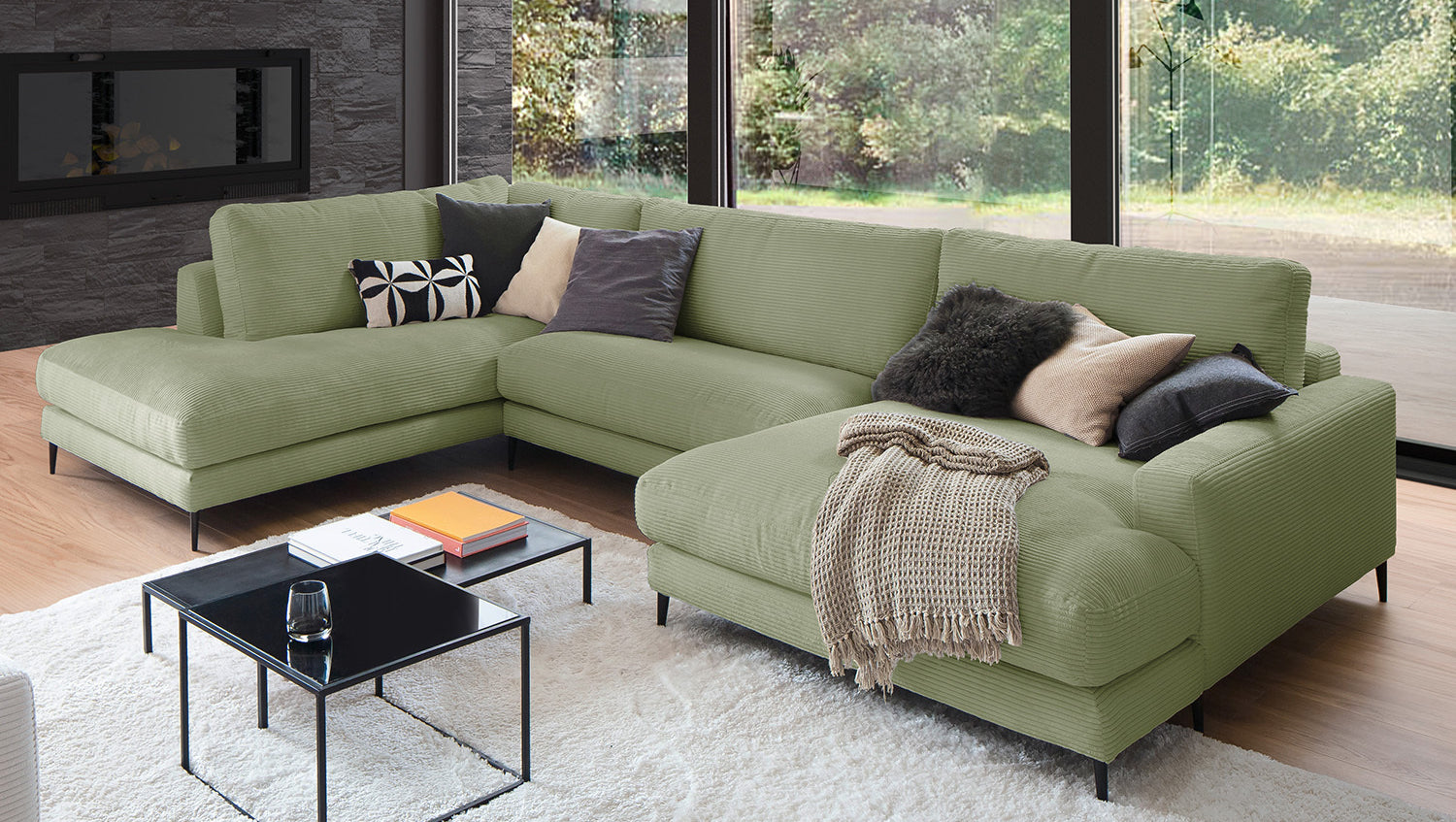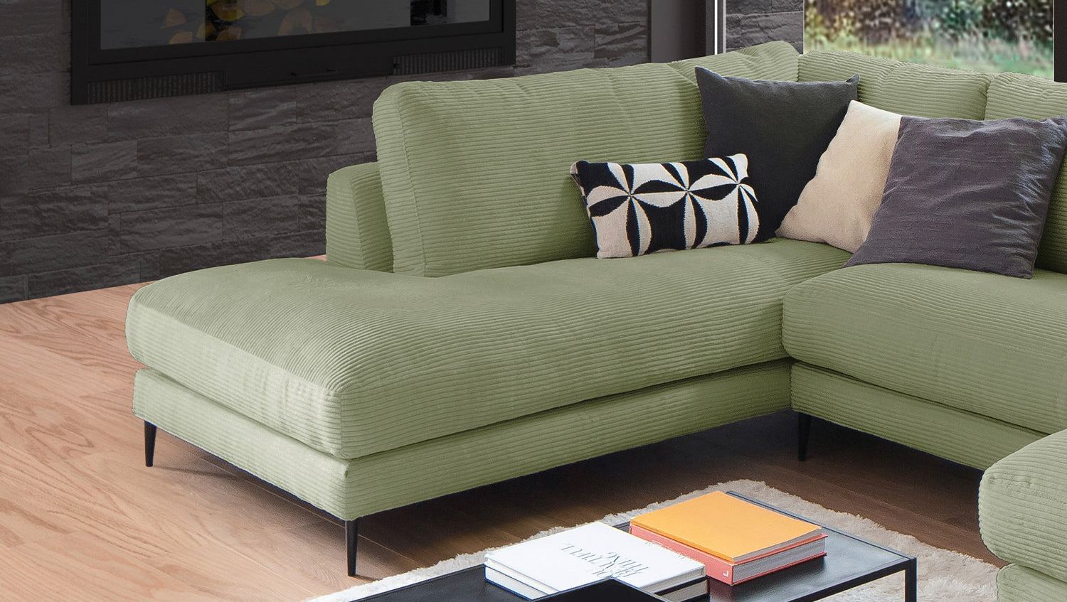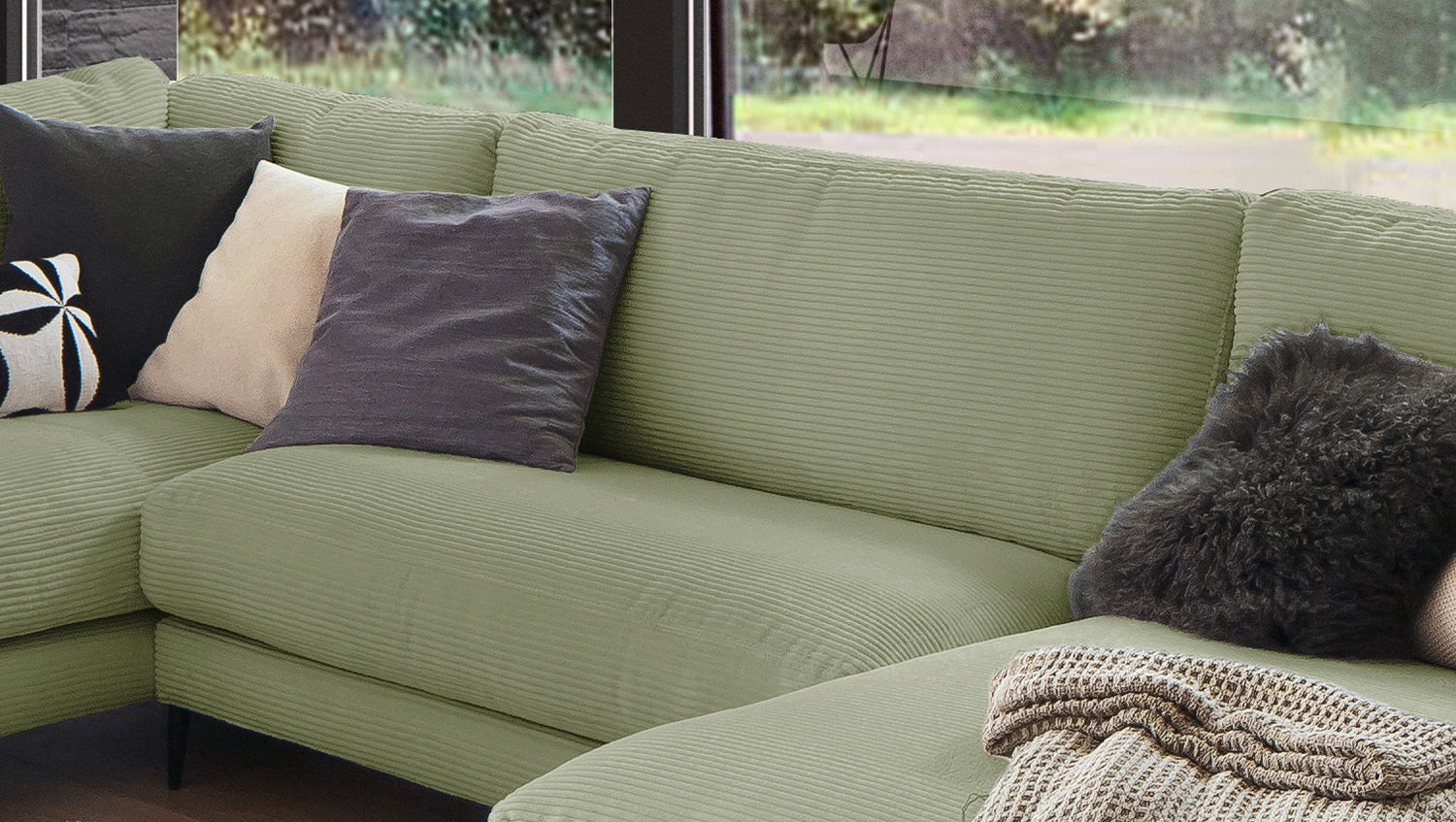 El Sofá en forma de U KAWOLA CARA combina el diseño clásico con la practicidad moderna y se integra a la perfección en cualquier interior. Sus formas suaves y la moderna funda de tela de pana confieren al sofá una elegancia atemporal. La compleja tapicería de 3 niveles garantiza la máxima comodidad de asiento y se adapta a la forma del cuerpo gracias a su estructura desenfadada. El sofá también está equipado con cojines de cámara de alta calidad. Para evitar que el material de relleno se comprima, estos Cojines respaldo deben sacudirse después de cada uso. Sea cual sea la ocasión, ¡todo el mundo encontrará un lugar para relajarse en el sofá CARA!