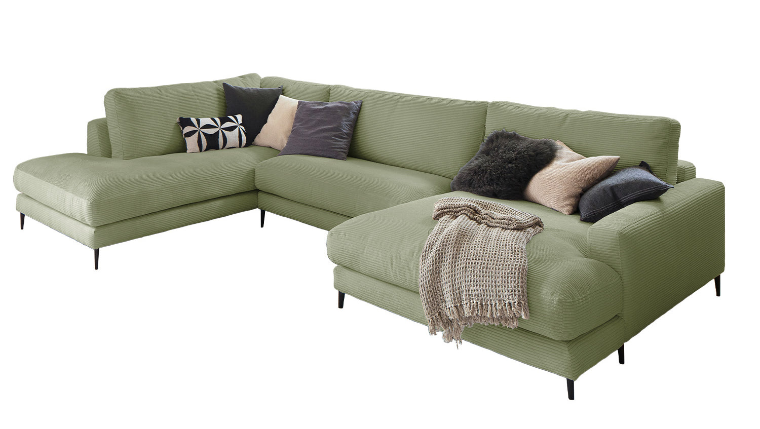 KAWOLA Sofá en forma de U CARA Pana verde oliva