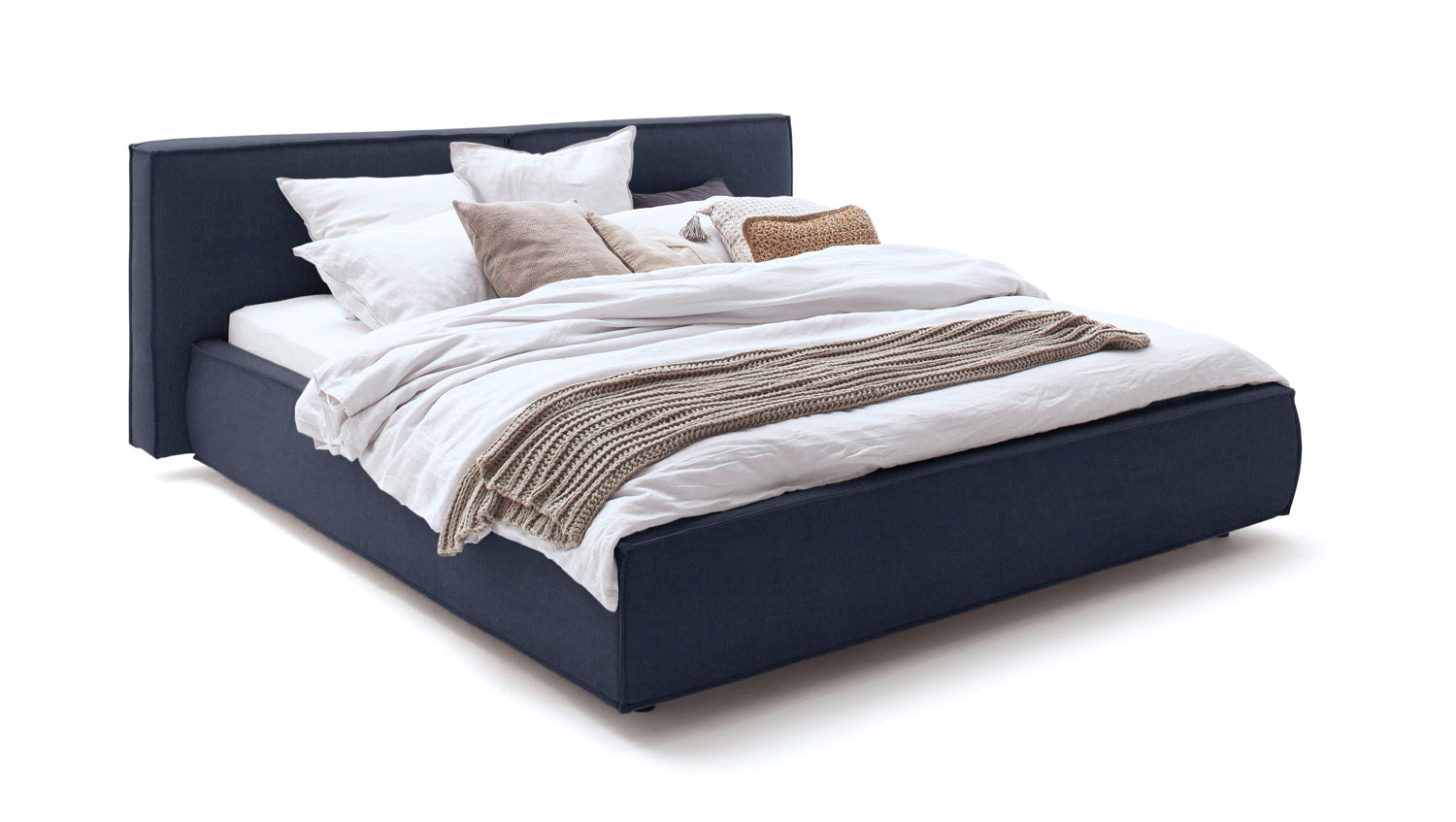KAWOLA cama CARLO tapizada tela azul oscuro