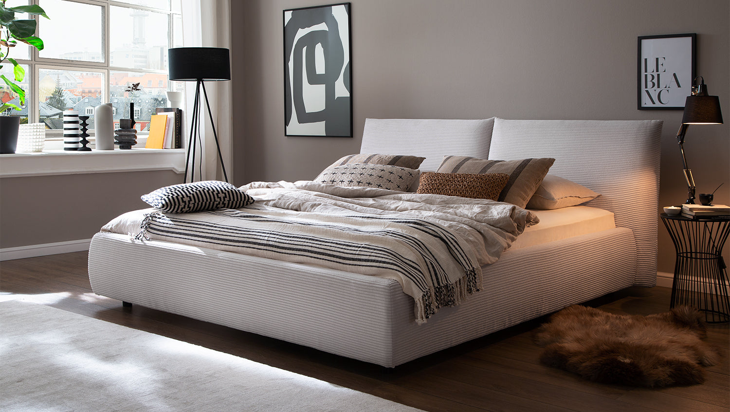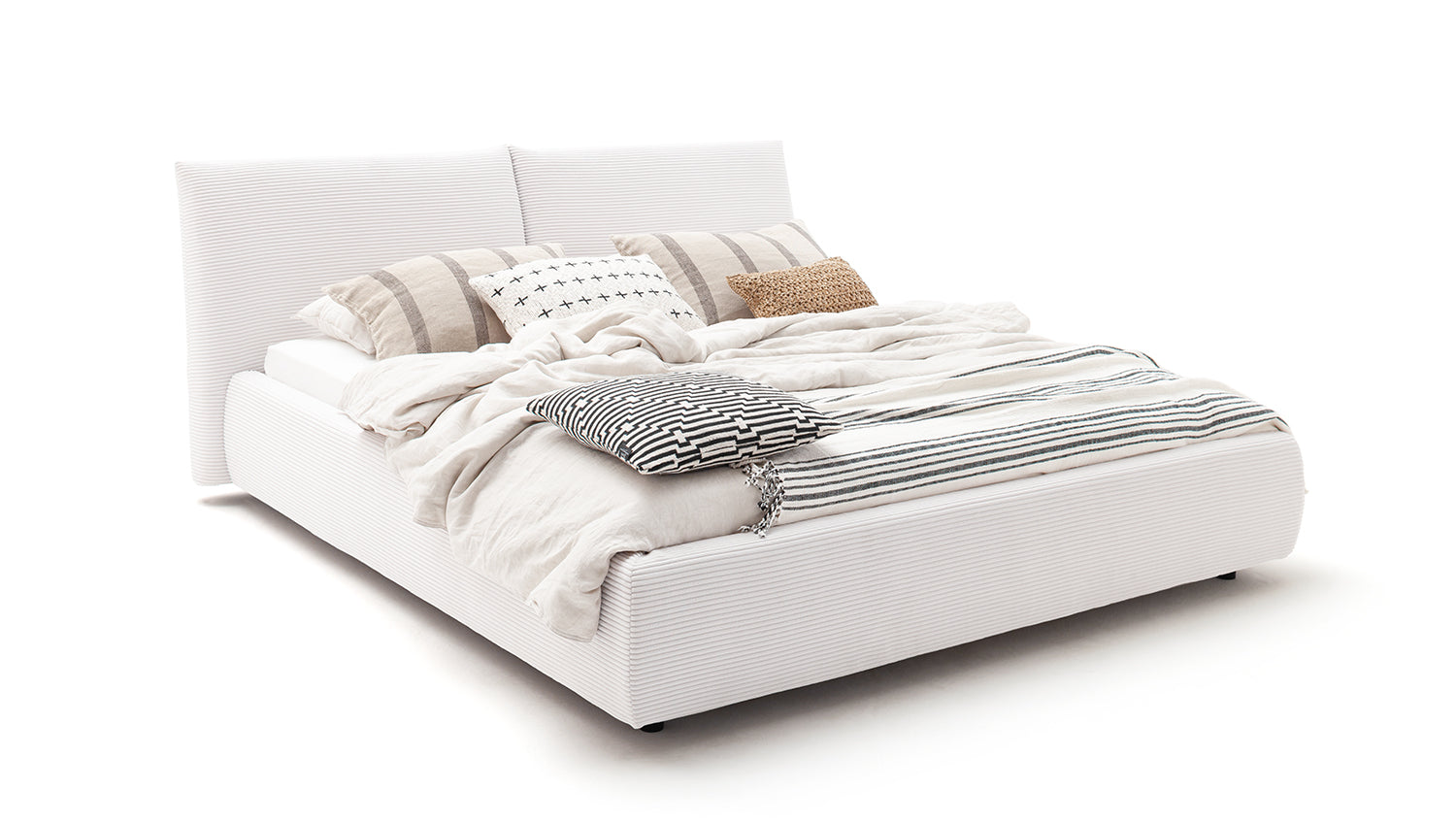 KAWOLA cama HENRY cama tapizada Pana blanco