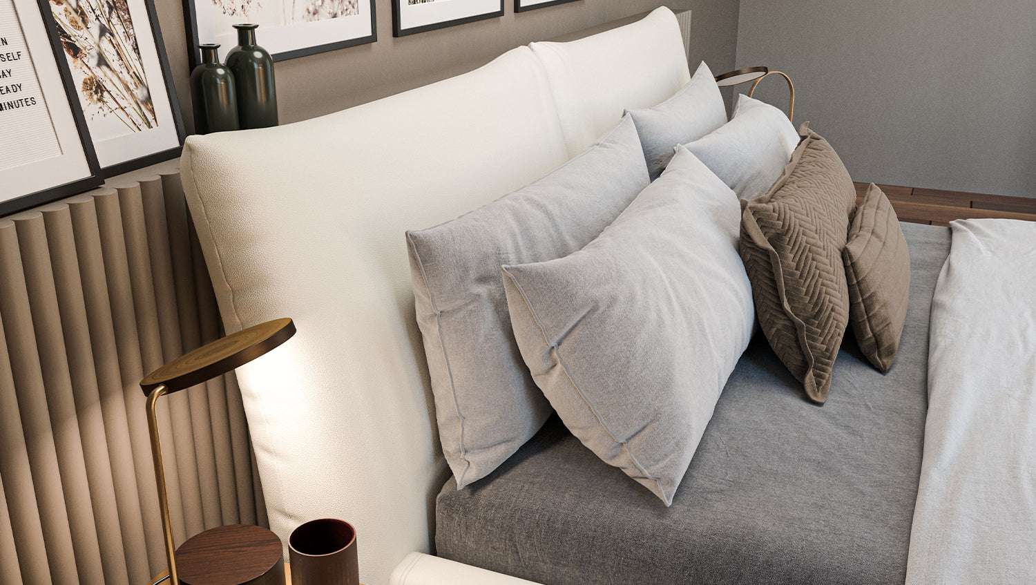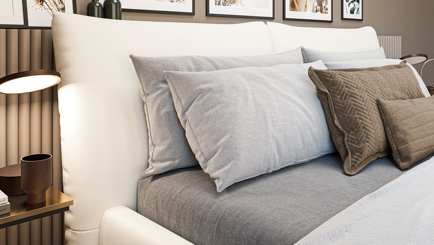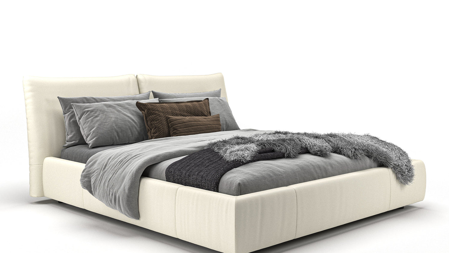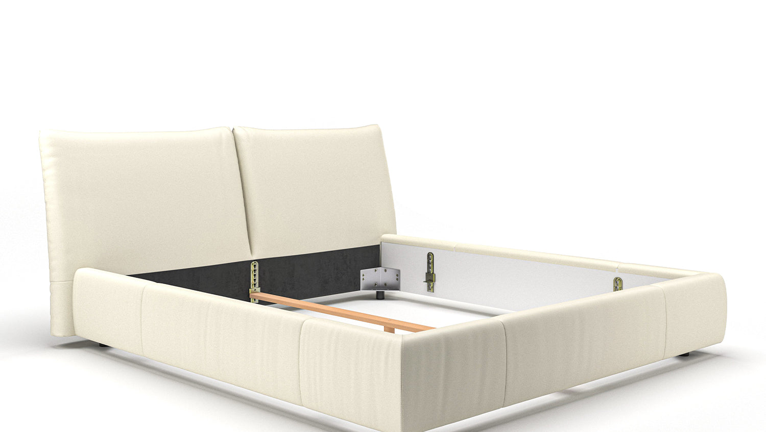 KAWOLA cama HENRY cama tapizada de cuero blanco