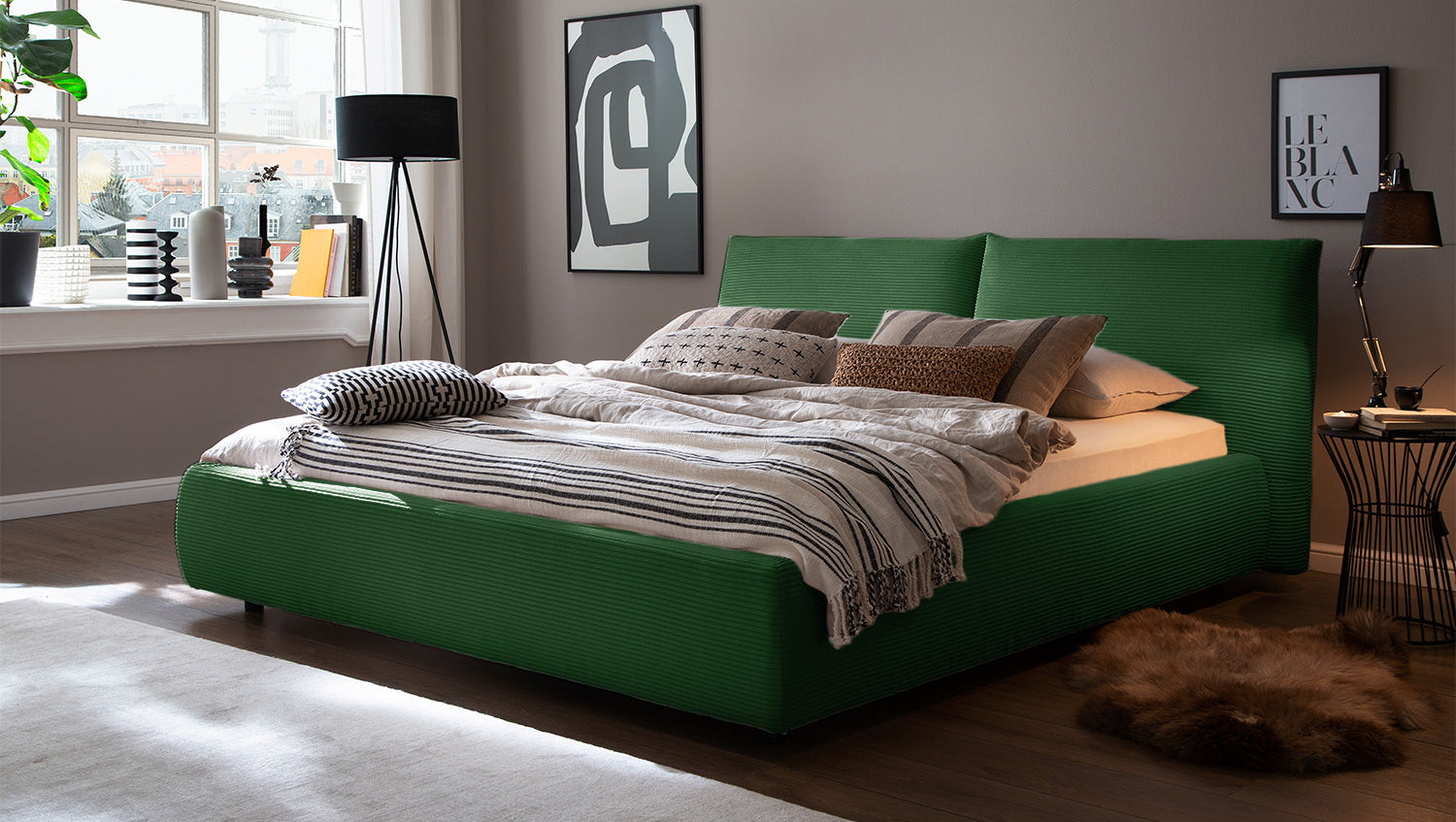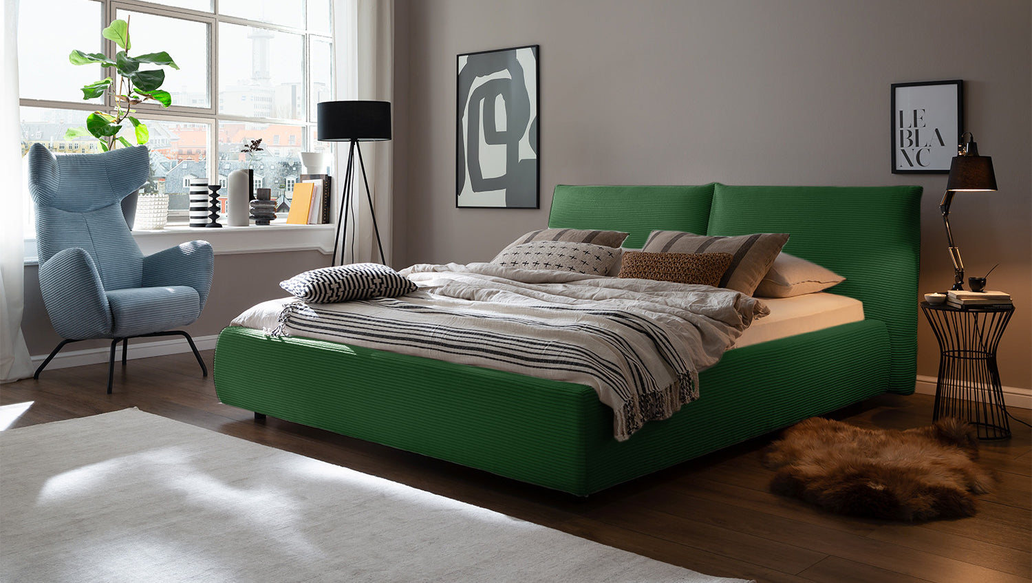 KAWOLA cama HENRY cama tapizada Pana esmeralda