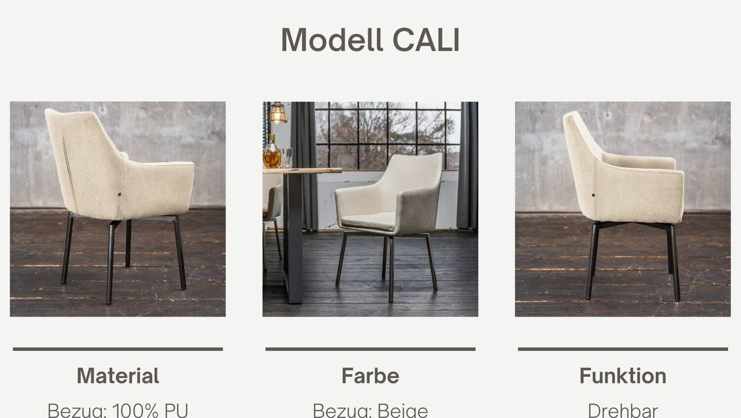 La silla Cali impresiona por su diseño sencillo y elegante. La silla de comedor combina hábilmente lo clásico con lo moderno. Gracias a su aspecto clásico y moderno, la silla Cali se puede integrar en cualquier entorno de vida existente. La estructura de acero inoxidable armoniza perfectamente con la elección de la tapicería y le da a la silla su carácter moderno. Lo más destacado de la silla es que la carcasa del asiento tiene una función giratoria. Ya sea en el comedor, la sala de conferencias o la sala de espera, la silla Cali queda bien en todas partes.
