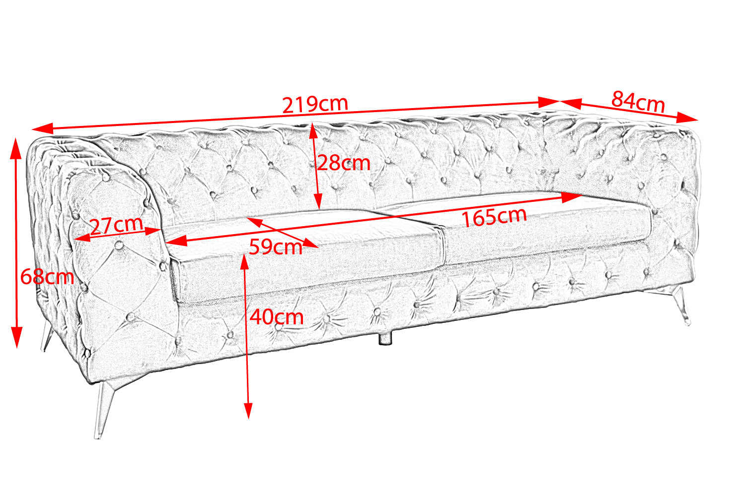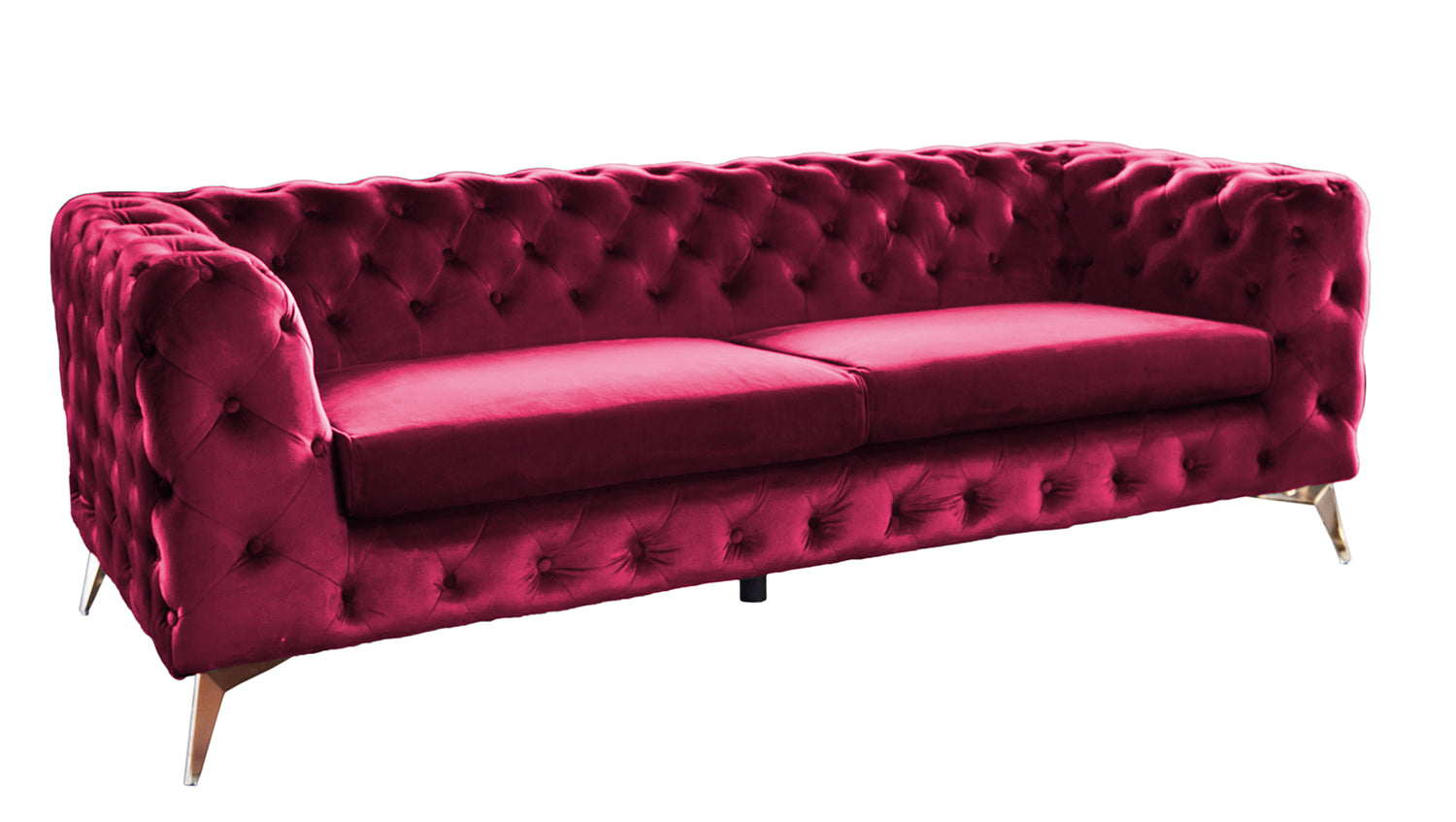 El sofá NARLA de KAWOLA atrae todas las miradas. El respaldo y los reposabrazos están acolchados a la moda y todo el sofá está tapizado en un bonito tejido aterciopelado. La forma del sofá y el acolchado le dan al sofá de tela un aspecto de estilo Chesterfield. Los pies de metal destacan visualmente del sofá y le dan un aspecto moderno al aspecto Chesterfield.