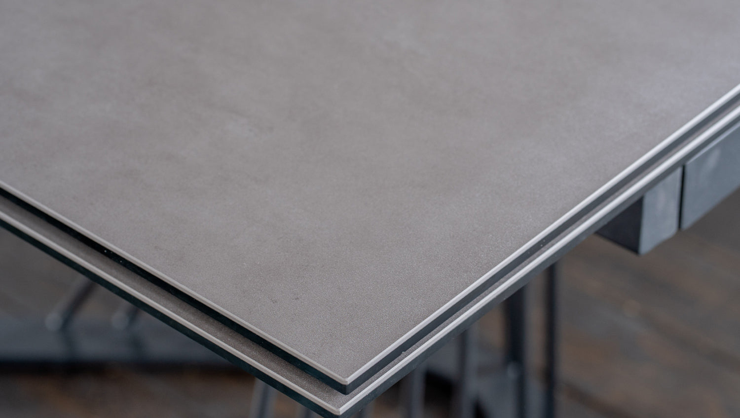 Mesa de comedor extensible KAWOLA BENNO de cerámica gris oscuro 160 x 90 cm