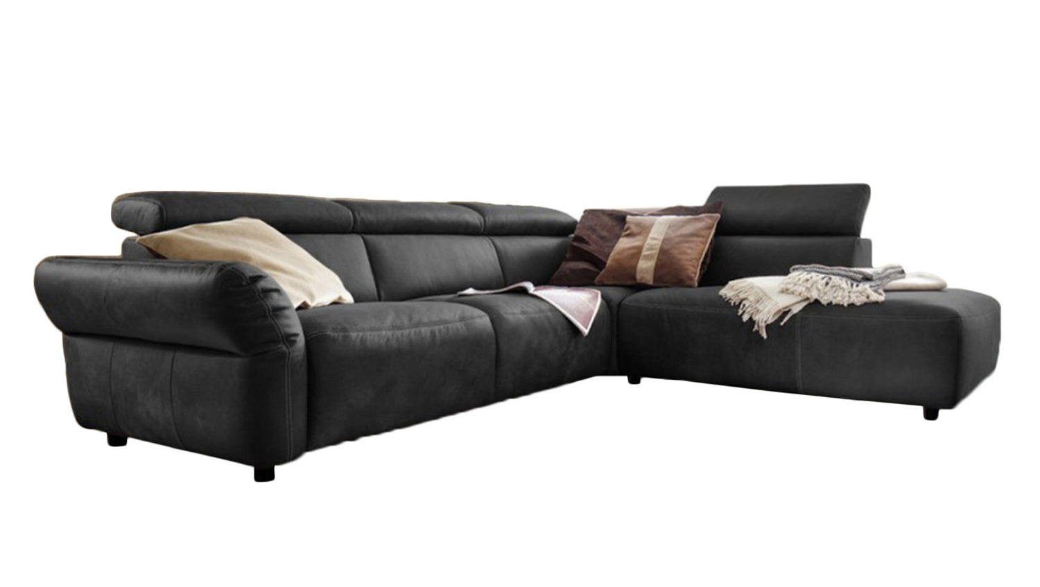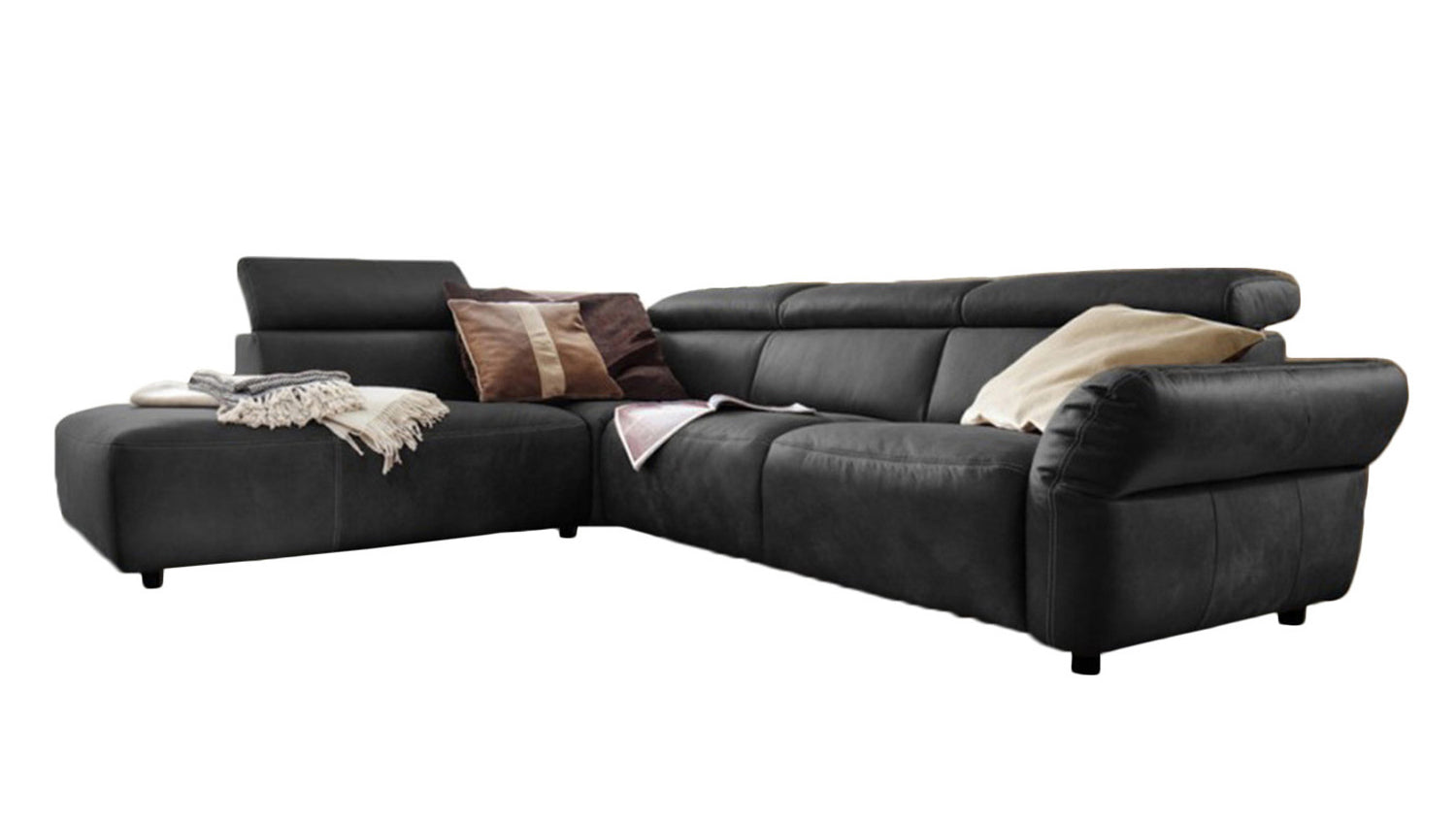 KAWOLA Sofá RISO Sofá esquinero con ajuste motorizado de la profundidad del asiento cuero negro