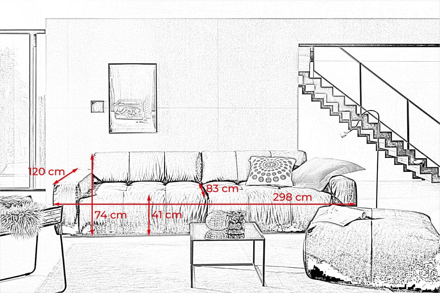 El sofá PALACE impresiona por su elegancia atemporal, su diseño moderno y su confort especialmente elevado. La elegante funda de terciopelo cubre la acogedora superficie reclinable, cuyo desenfadado tapizado invita a relajarse y descansar. El extra especial: el sofá PALACE puede transformarse de un Sofá extra ancho en un asiento clásico en un abrir y cerrar de ojos. Gracias a la regulación de la profundidad del asiento, que se consigue ajustando el respaldo, la profundidad del asiento puede reducirse de 83 cm a 59 cm. Esto le permite decidir si prefiere una posición sentada más erguida o si prefiere tener espacio para estirarse. Nota: Cuando son nuevas, las fundas muestran un pronunciado patrón ondulado, que es intencionado debido al diseño, el modelo y la construcción. La tapicería se adaptará a la forma del cuerpo y la firmeza del asiento disminuirá ligeramente. Las ligeras diferencias en la firmeza del asiento de los grupos complementarios se deben al diseño y, por tanto, no son motivo de queja.