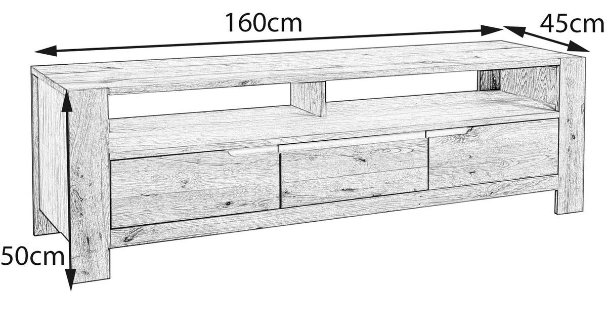 Mueble bajo KAWOLA LIAN 2 puertas y 1 cajón de roble parcialmente macizo (ancho x alto x profundidad) 160 x 50 x 45 cm