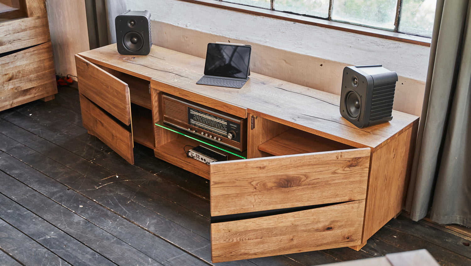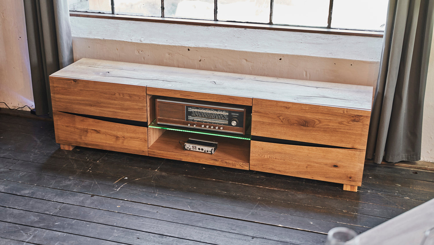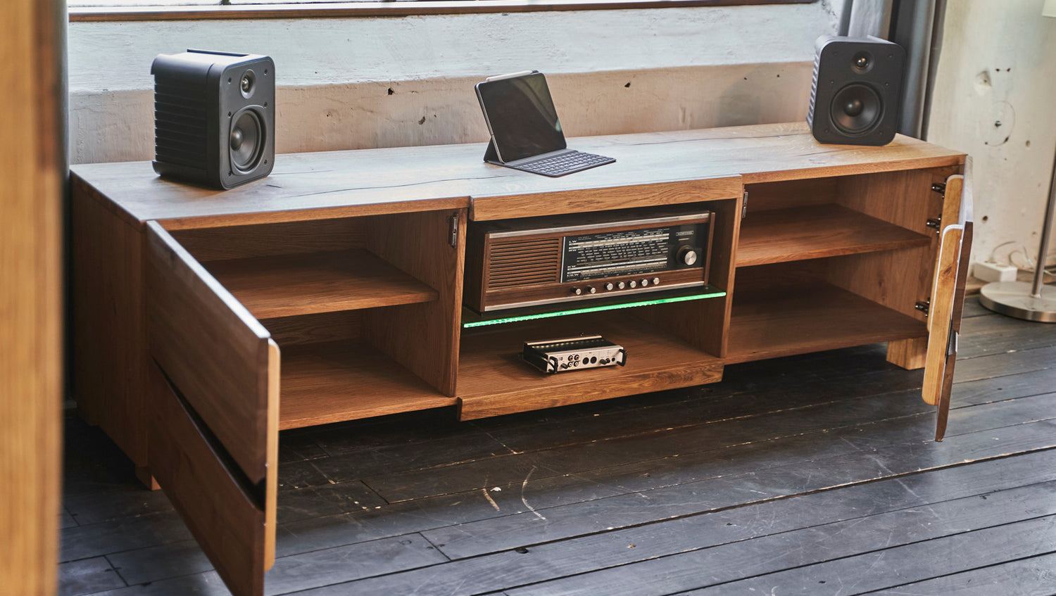Mueble bajo KAWOLA YOSHA 2 puertas con LED roble