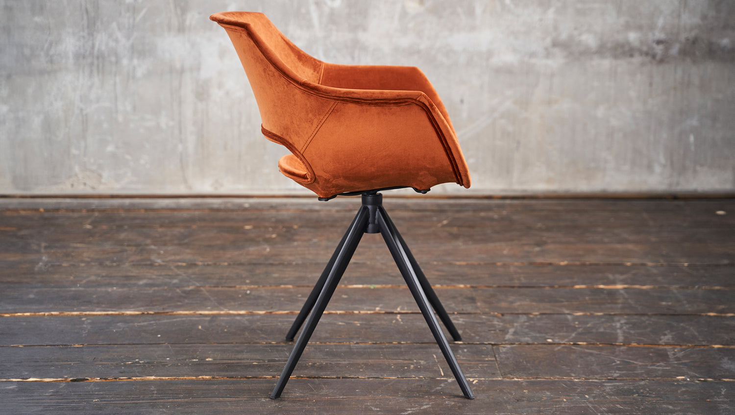 Esta silla es 2a oportunidad de una devolución de un cliente, que tiene ciertos defectos de menor importancia y por lo tanto es ofrecido por nosotros a un precio reducido. Los posibles defectos son: Arañazos en el armazón, marcas de presión, ligera suciedad y desviaciones de color en la tapicería, así como desgarros en la tela de los bajos. Por favor, eche un vistazo a las fotos de defectos directamente después de la foto principal. Sólo sirven para ilustrar posibles defectos. Se trata de imágenes de ejemplo generales y no representan el artículo en cuestión. El artículo no presenta necesariamente todos los defectos indicados. Las telas y los colores de los tapizados que aparecen en las imágenes de defectos tampoco se corresponden con este artículo. La silla ZAJA combina el diseño industrial con el moderno. En ella podrá reclinarse cómodamente y cenar con estilo. El material tiene un acabado de gran calidad y es fácil de limpiar. La silla ZAJA es adecuada para prácticamente cualquier salón. Ya sea en el escritorio o en el comedor, la silla destaca en todas partes gracias a su moderno diseño. Nada se interpone en el camino de las horas de trabajo o de ocio. Sin embargo, lo más destacado de la silla es su función giratoria, que permite girar la posición sentada 360 grados.