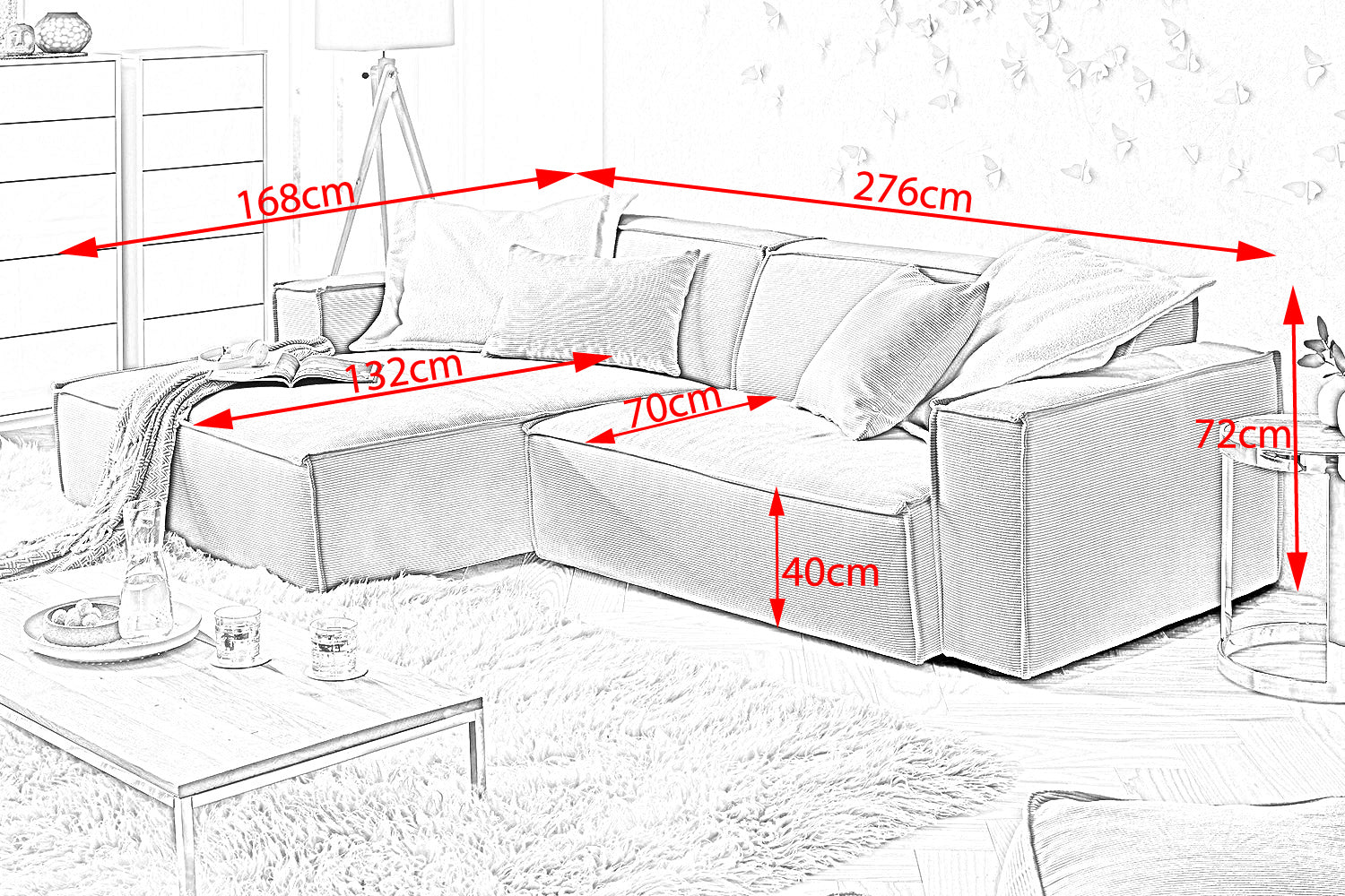El sofá esquinero SAMU de KAWOLA impresiona por su extraordinaria comodidad de asiento, que se debe a la estructura extremadamente suave y desenfadada del tapizado e invita a quedarse y relajarse. La tapicería se adapta a la forma del cuerpo; las impresiones del asiento y las ondulaciones de las fundas son típicas del producto. La funda de Pana fina es resistente, duradera y garantiza una agradable experiencia al sentarse. El tejido tiene más nervaduras y, por tanto, una estructura más fina que la pana normal, lo que le confiere un aspecto más refinado y una elegancia atemporal. El sofá se integra a la perfección en cualquier ambiente y también destaca en la habitación. Si quiere dar a su salón un toque extraordinario, el sofá SAMU es sin duda la elección adecuada.