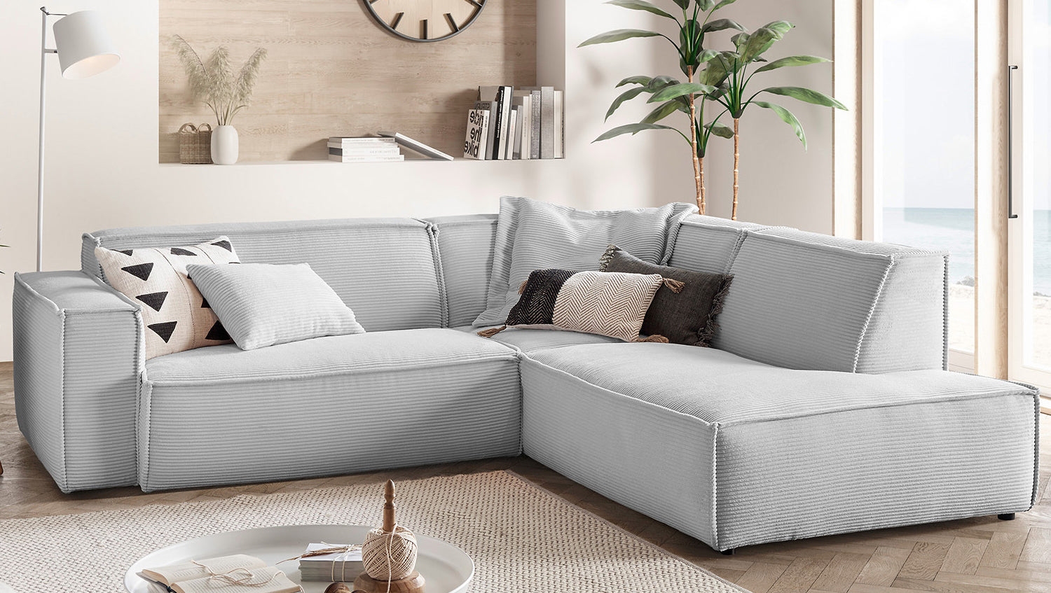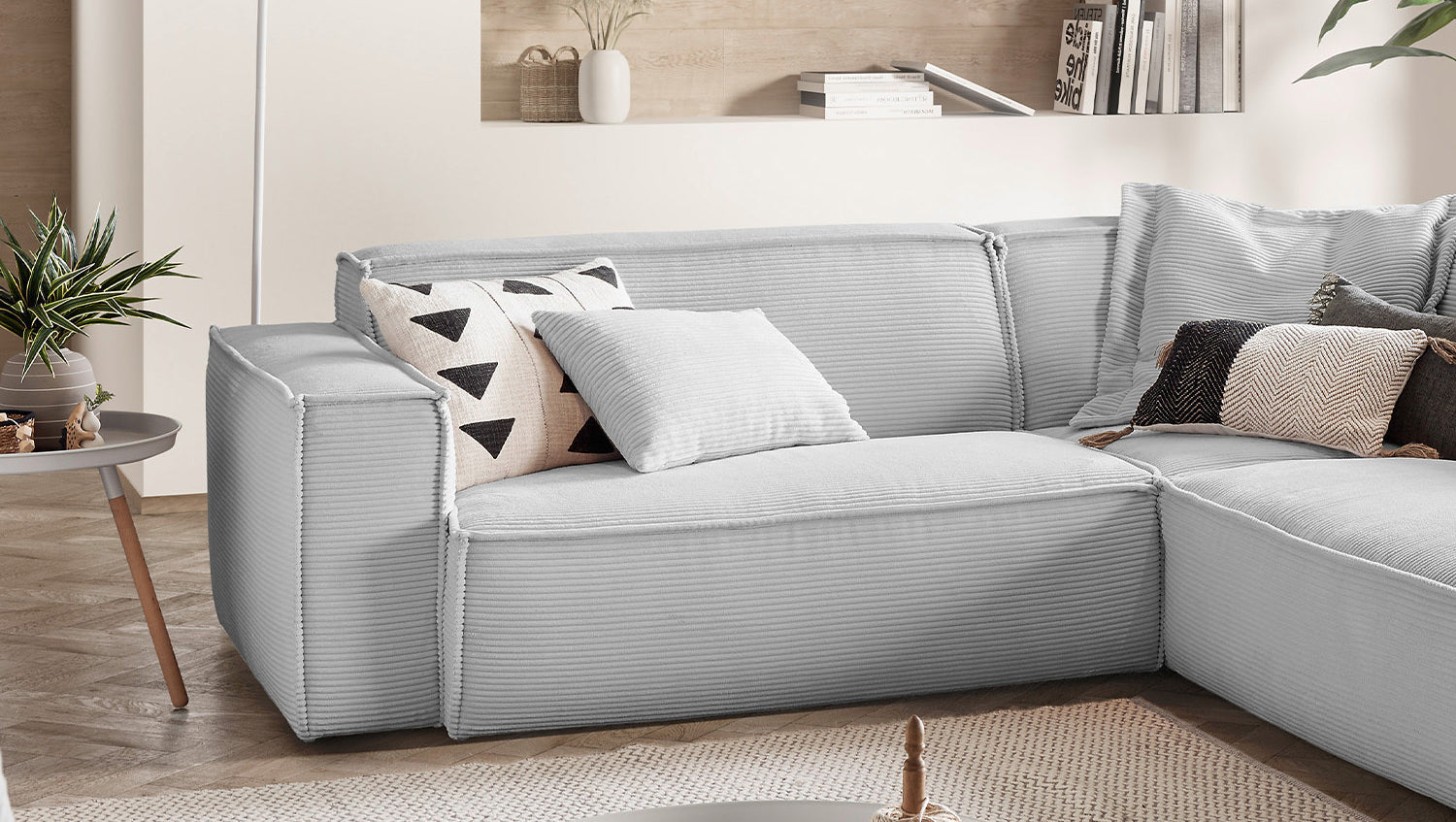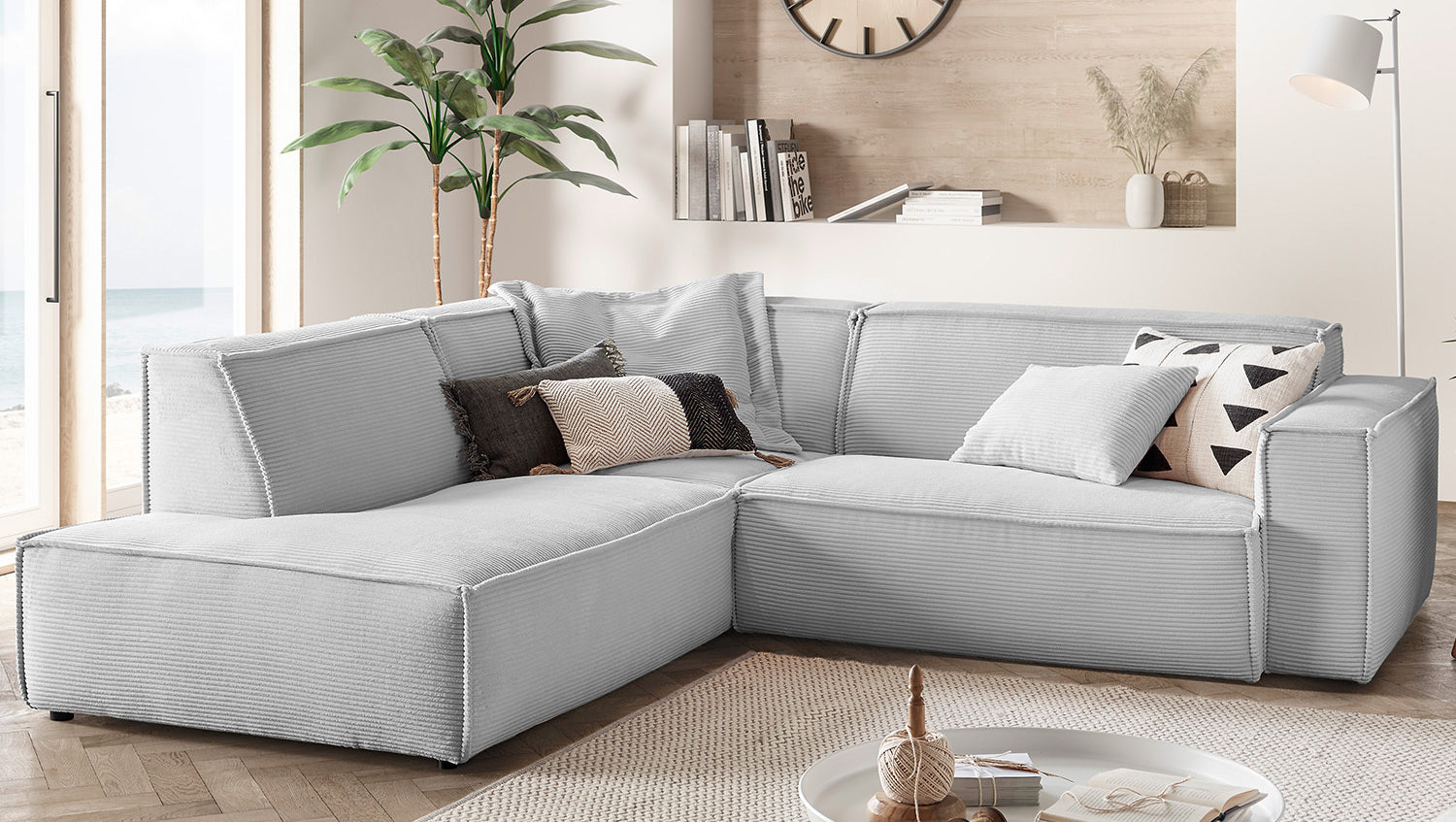 KAWOLA Sofá SAMU Sofá esquinero Pana gris claro