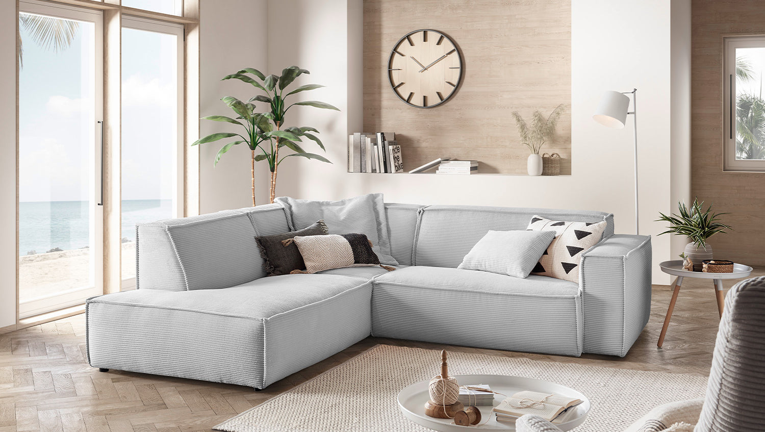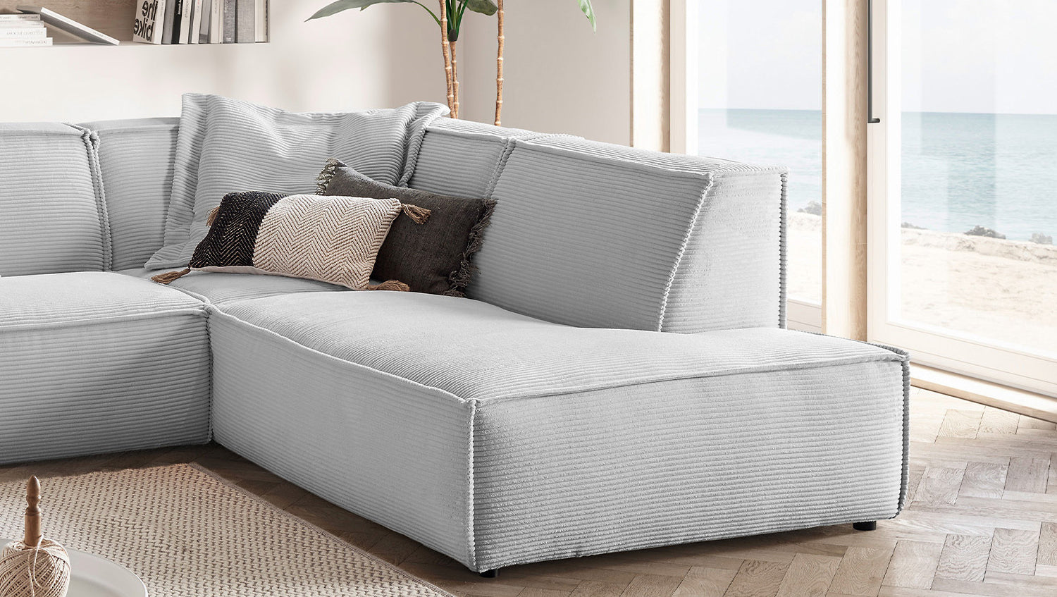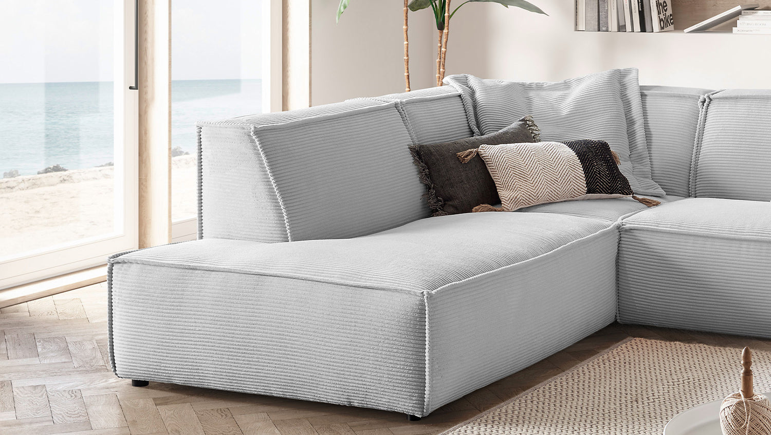 KAWOLA Sofá SAMU Sofá esquinero Pana gris claro
