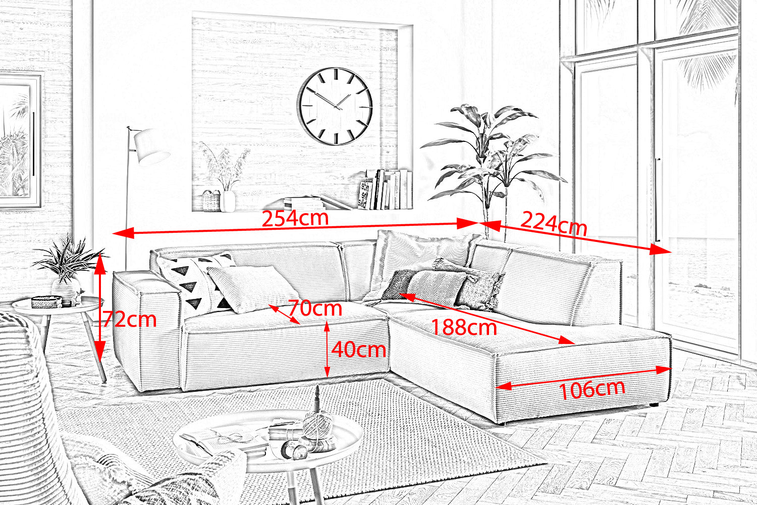 El sofá esquinero SAMU de KAWOLA impresiona por su excelente comodidad de asiento, que se logra gracias a la tapicería extremadamente suave e informal, que invita a descansar y relajarse. El acolchado se adapta a la forma del cuerpo; los estampados de los asientos y las ondas en las fundas son típicos del producto. Su forma moderna y urbana le da al sofá un aspecto inconfundible y ofrece suficiente espacio para pasar agradables veladas. Con su diseño atemporal, se adapta perfectamente a cualquier entorno y se ve bien incluso cuando está de pie libremente en la habitación. Si quieres darle a tu sala de estar un toque inusual, ¡el sofá SAMU es definitivamente para ti!