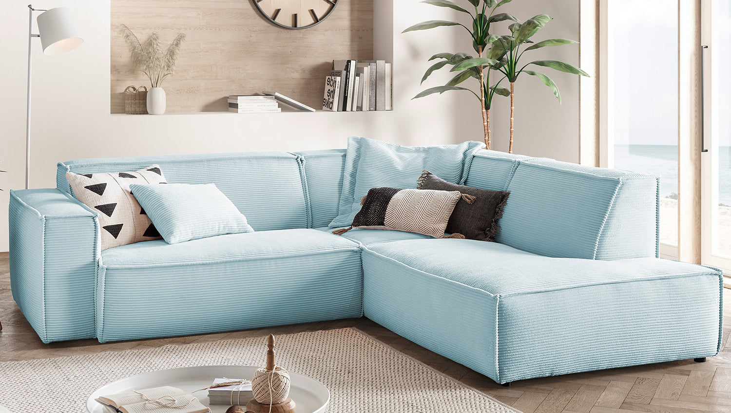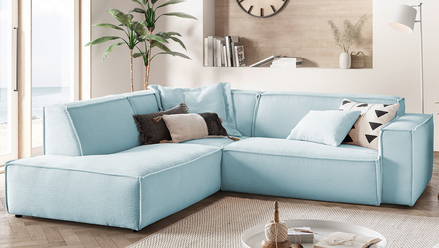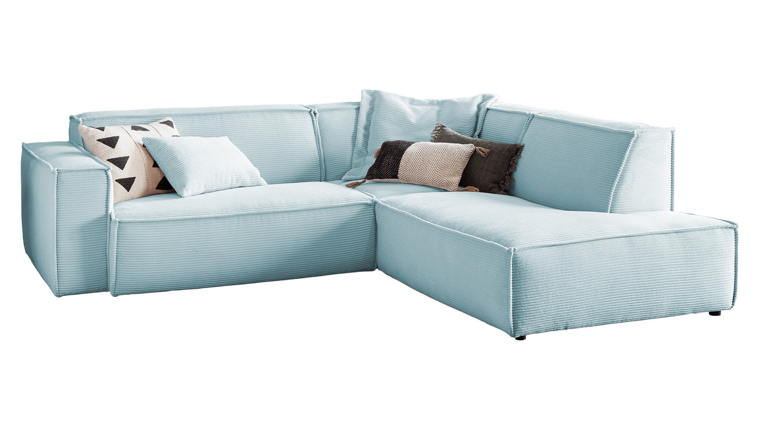 KAWOLA Sofá SAMU Sofá esquinero de Pana azul claro