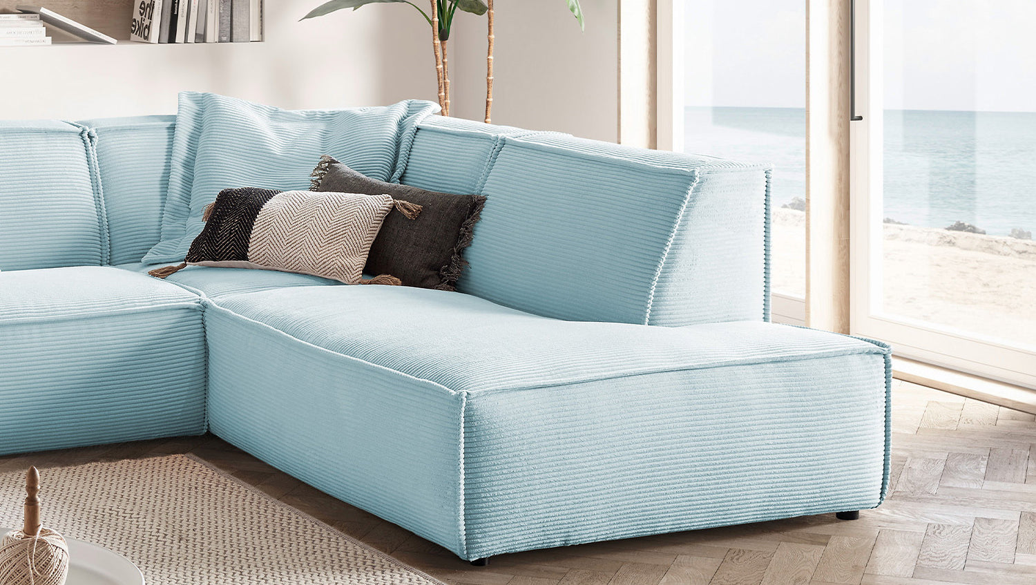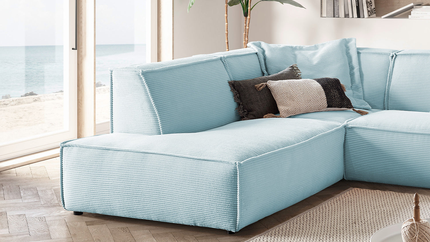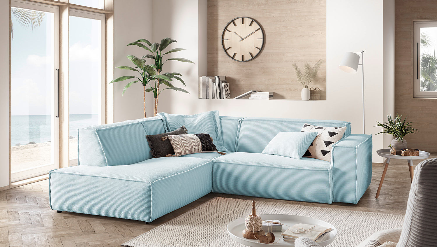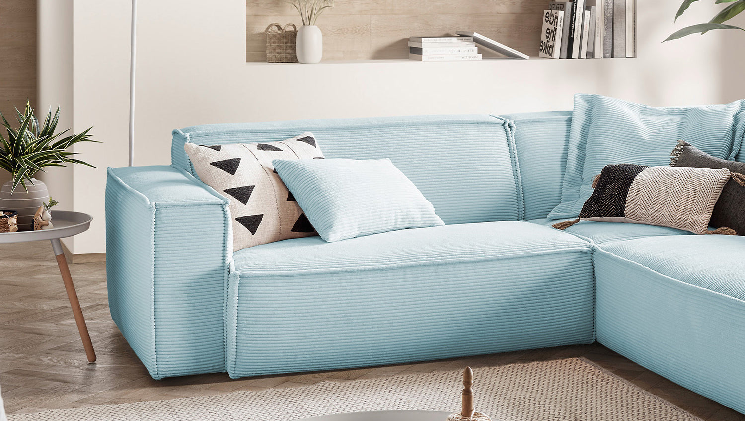 KAWOLA Sofá SAMU Sofá esquinero de Pana azul claro