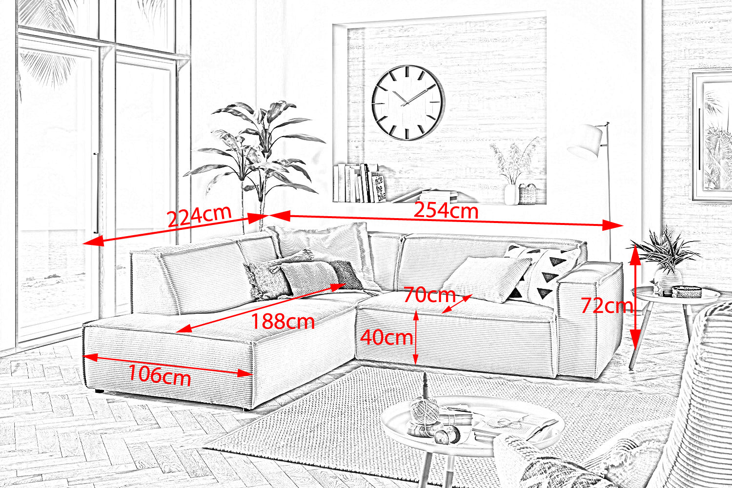 El sofá esquinero SAMU de KAWOLA impresiona por su excelente comodidad de asiento, que se logra gracias a la tapicería extremadamente suave e informal, que invita a descansar y relajarse. El acolchado se adapta a la forma del cuerpo; los estampados de los asientos y las ondas en las fundas son típicos del producto. Su forma moderna y urbana le da al sofá un aspecto inconfundible y ofrece suficiente espacio para pasar agradables veladas. Con su diseño atemporal, se adapta perfectamente a cualquier entorno y se ve bien incluso cuando está de pie libremente en la habitación. Si quieres darle a tu sala de estar un toque inusual, ¡el sofá SAMU es definitivamente para ti!