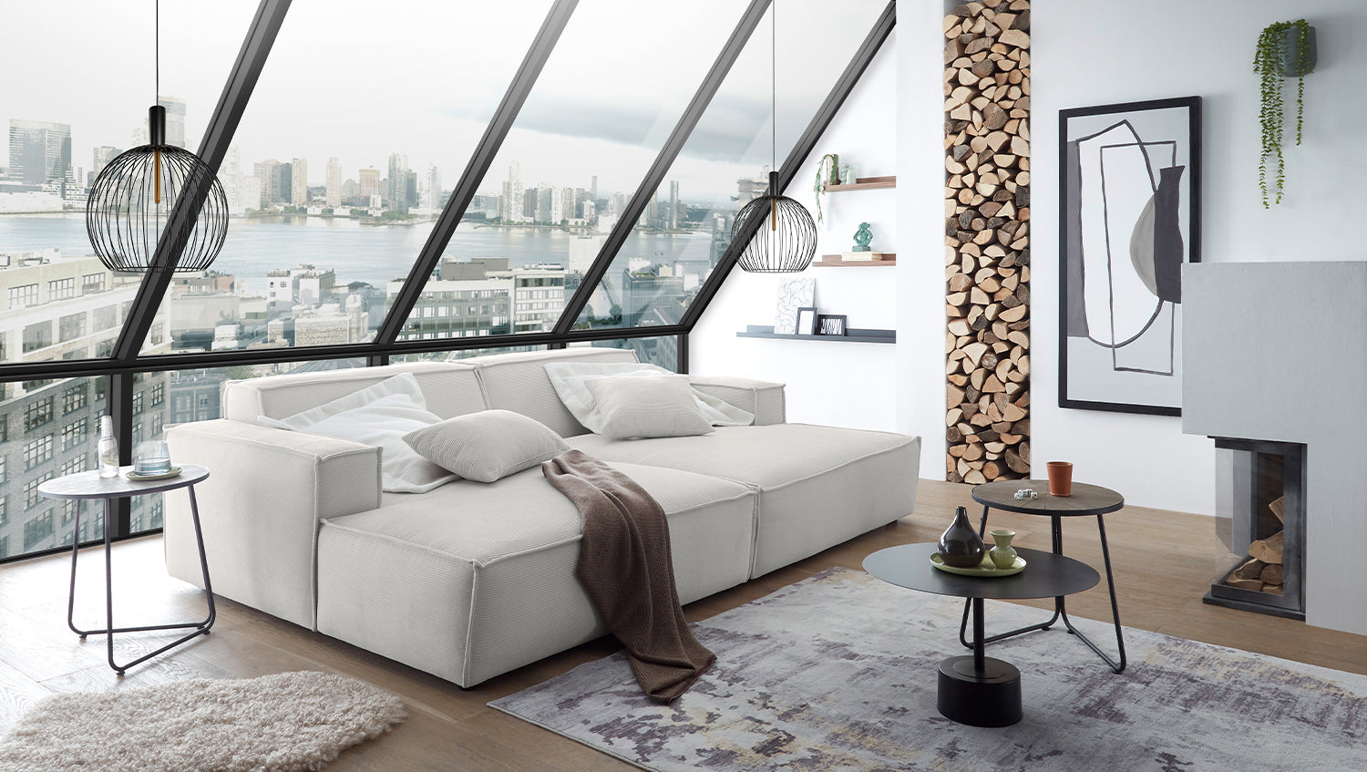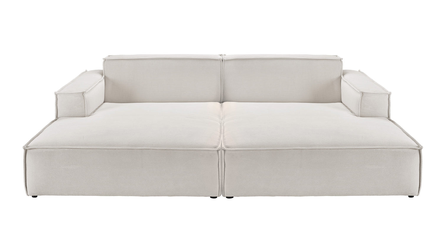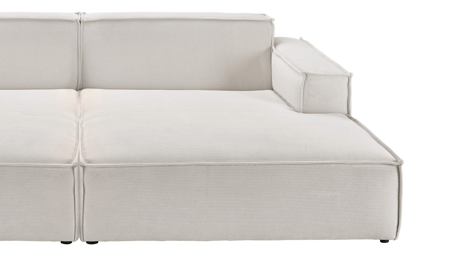 El Sofá extra ancho SAMU de KAWOLA impresiona por su extraordinaria comodidad de asiento, que se consigue gracias a la estructura extremadamente suave y desenfadada de la tapicería e invita a quedarse y relajarse. La tapicería se adapta a la forma del cuerpo; las impresiones del asiento y las ondulaciones de las fundas son típicas del producto. La funda de Pana fina es resistente, duradera y garantiza una agradable experiencia al sentarse. El tejido tiene más nervaduras y, por tanto, una estructura más fina que la pana normal, lo que le confiere un aspecto más refinado y una elegancia atemporal. El sofá se integra a la perfección en cualquier ambiente y también destaca en la habitación. Si quiere dar a su salón un toque extraordinario, el sofá SAMU es sin duda la elección adecuada.