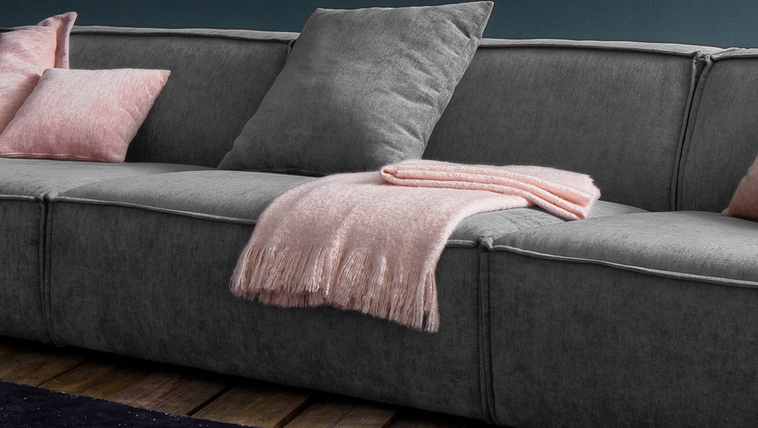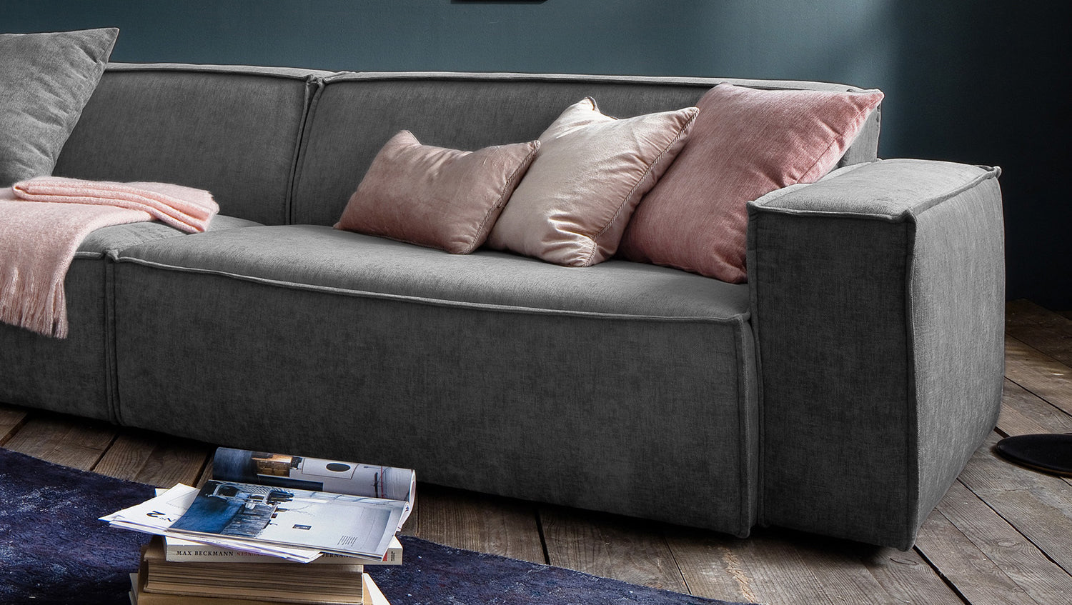Sofá KAWOLA sofá gigante SAMU de tela gris oscuro