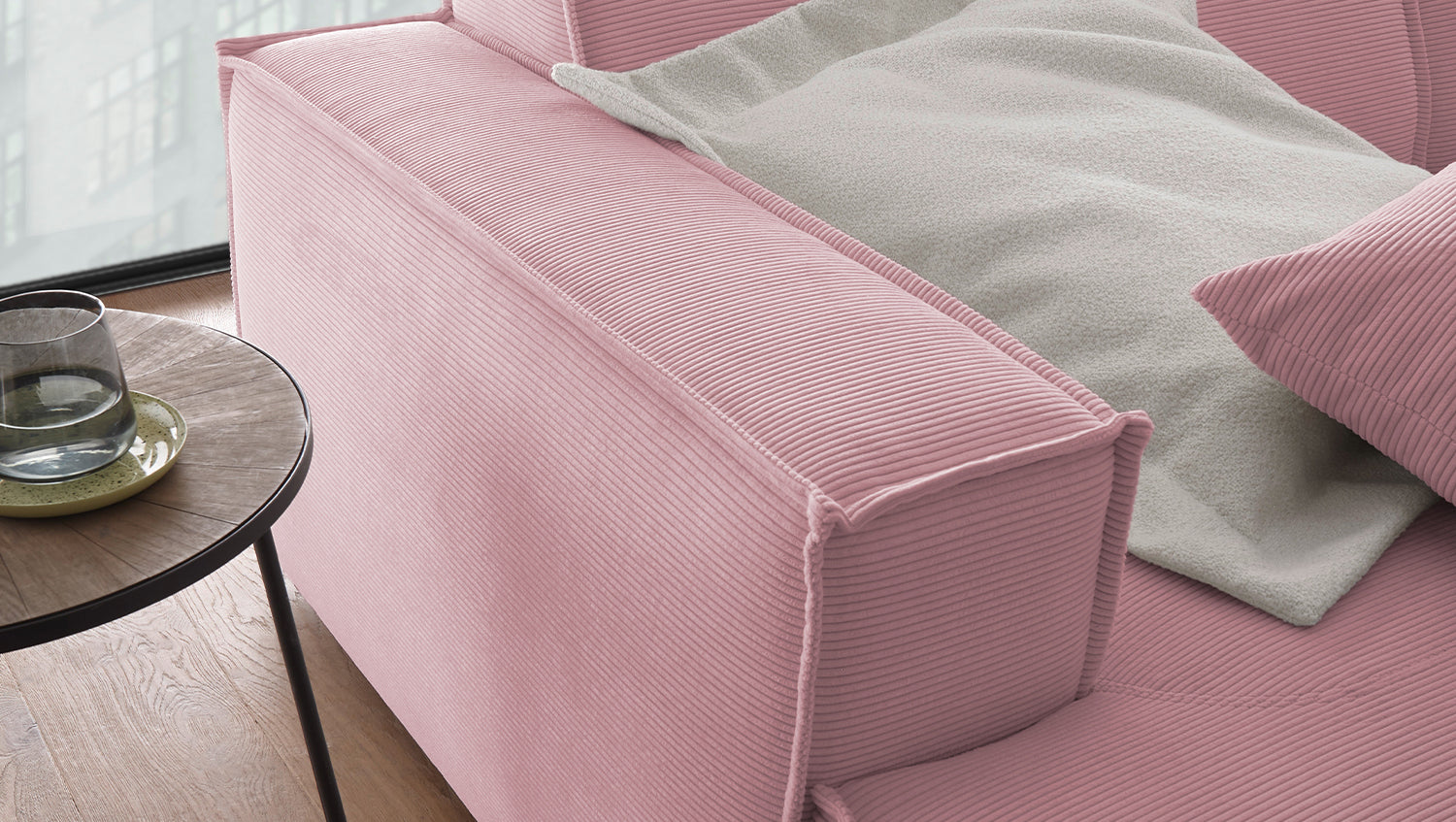 KAWOLA Sofá extra ancho SAMU pana fina rosa