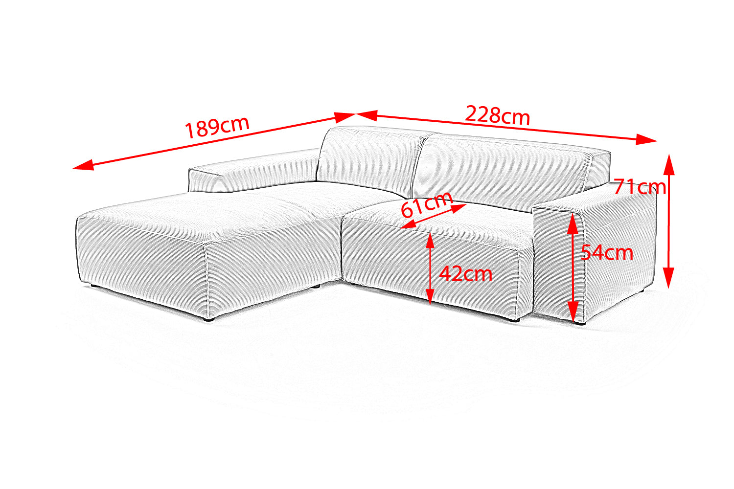 Relájate en el cómodo sofá esquinero KAWOLA RANI con su acogedora tapicería de Pana fina. El robusto armazón de madera maciza garantiza estabilidad y durabilidad, mientras que los mullidos asientos y respaldos con su acolchado de espuma fría proporcionan un confort óptimo. La moderna funda de pana fina no sólo es muy resistente, sino que también confiere al sofá un aspecto moderno y un tacto agradable. Gracias a su diseño atemporal, el sofá se integra fácilmente en cualquier ambiente. Es la elección perfecta para cualquiera que busque un sofá elegante y cómodo para el salón. Prepárese para reclinarse en nuestro sofá esquinero RANI y disfrutar de la vida! Instrucciones de cuidado Pana: Debe aspirar el sofá con regularidad, preferiblemente con un accesorio de cepillo suave. Utilice un producto de limpieza suave y un paño húmedo para eliminar las manchas. Utilice muy poca agua al limpiar y deje que la funda se seque completamente antes de usarla. Evite la luz solar directa para evitar que se decolore.