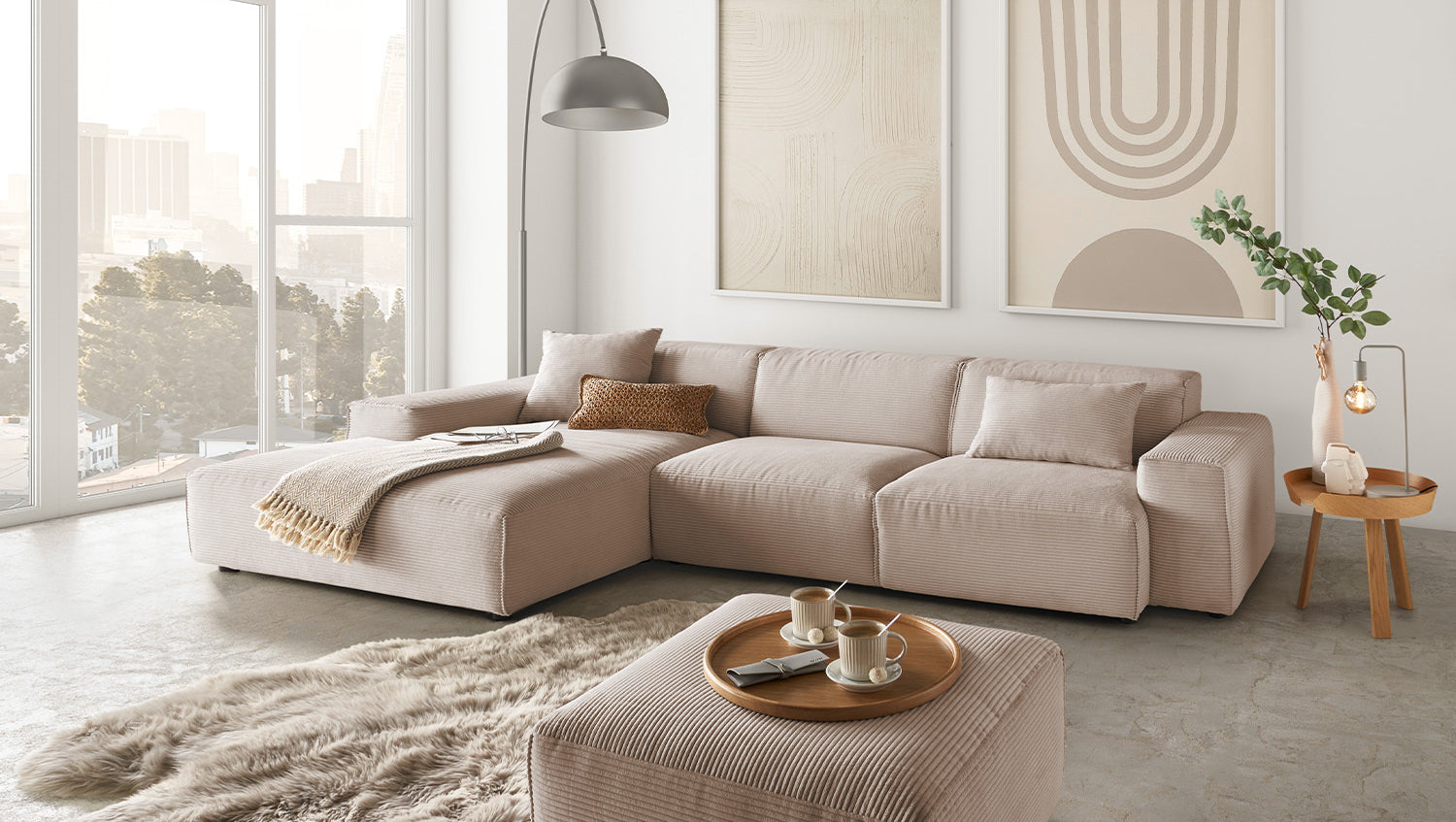 • MODERNO LOOK DE PANA - Estructura tridimensional de tacto suave, robusta y acogedora al mismo tiempo para un ambiente de vida con estilo