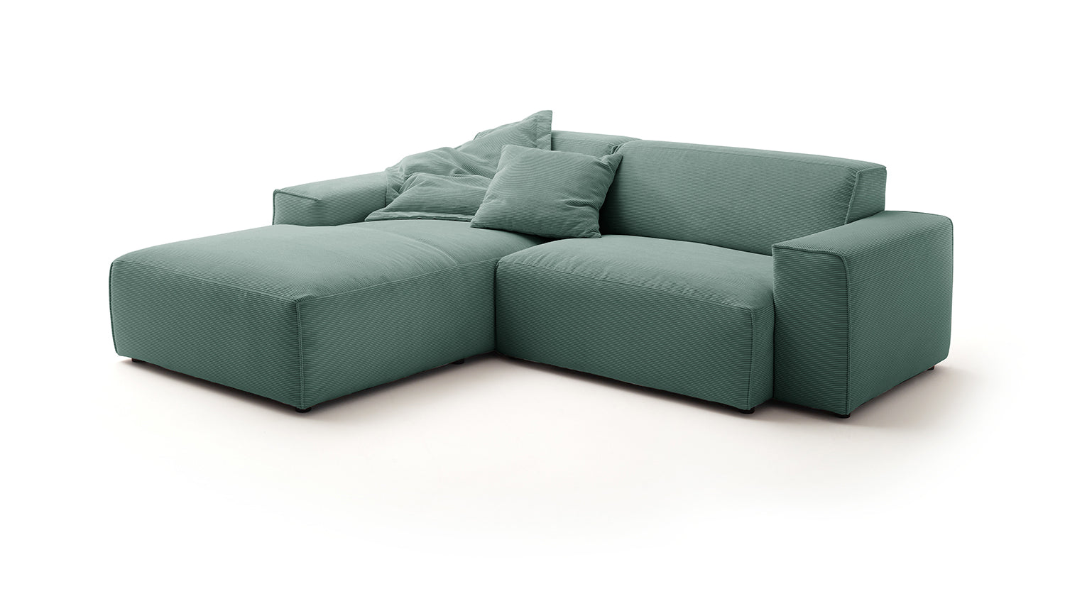 KAWOLA Sofá RANI Sofá esquinero Pana fina verde