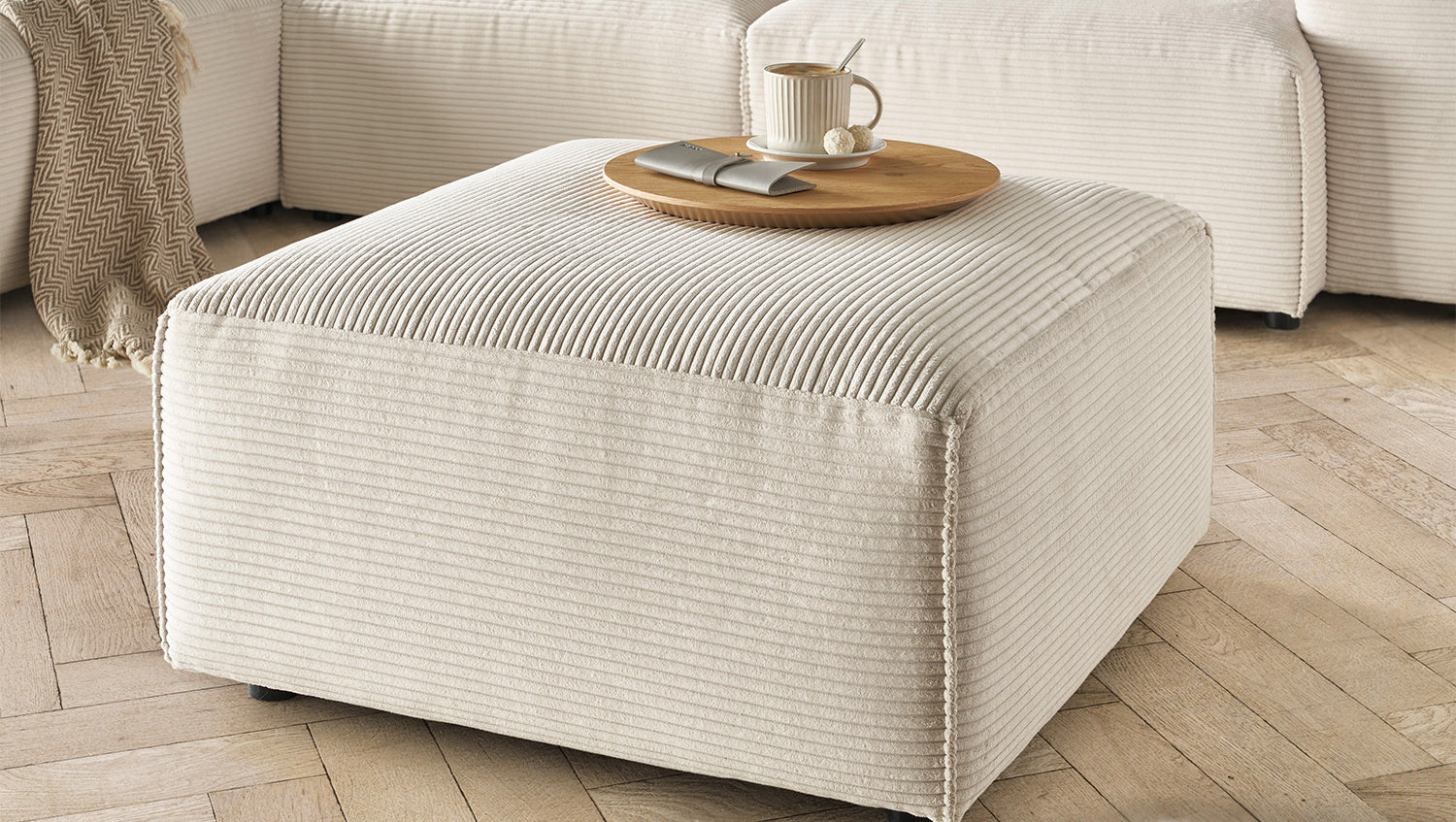 Relájate en el cómodo taburete tapizado RANI de KAWOLA con su acogedora funda de pana. El robusto armazón de madera maciza garantiza estabilidad y durabilidad, mientras que el mullido asiento con acolchado de espuma fría proporciona un confort óptimo. La funda de moderno tejido de pana no sólo es muy resistente, sino que confiere al Puf un aspecto moderno y un tacto agradable. Gracias a su diseño atemporal, se integra fácilmente en cualquier ambiente. El taburete tapizado RANI es la elección perfecta para cualquiera que busque un mueble elegante y cómodo para el salón. Instrucciones para el cuidado de la Pana: Debe aspirar el sofá con regularidad, preferiblemente con un accesorio de cepillo suave. Utilice un detergente suave y un paño húmedo para eliminar las manchas. Utilice muy poca agua al limpiar y deje que la funda se seque completamente antes de usarla. Evite la luz solar directa para evitar que se decolore.