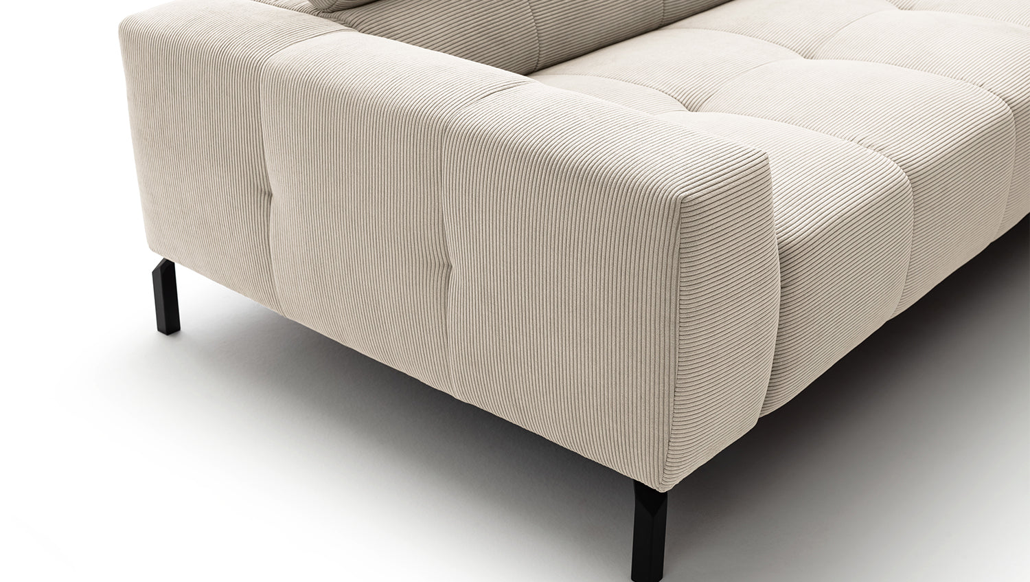 Descubra el elegante sofá esquinero OHIO de KAWOLA: la combinación perfecta de estilo y confort. La exclusiva Pana fina con acolchado integral confiere a su salón una elegancia atemporal. Disfrute de un confort de asiento de primera clase: el sofá ofrece un ajuste único de los reposacabezas: personalice su zona de asiento según sus necesidades, desde una suave inclinación hasta reposacabezas verticales. El sofá rinconero OHIO combina funcionalidad y diseño a la perfección. Gracias al confort de asiento de firmeza media, experimentará una mezcla ideal de apoyo y comodidad. La funda de pana no solo le da al sofá un aspecto cálido, sino que también le da un toque de estilo. Añada un toque de lujo y relajación a su hogar con el sofá rinconero OHIO de KAWOLA. Experimente un confort inigualable y un diseño atemporal: el hogar de sus sueños se hará realidad con este mueble único. Entrega sin cojines ni decoración