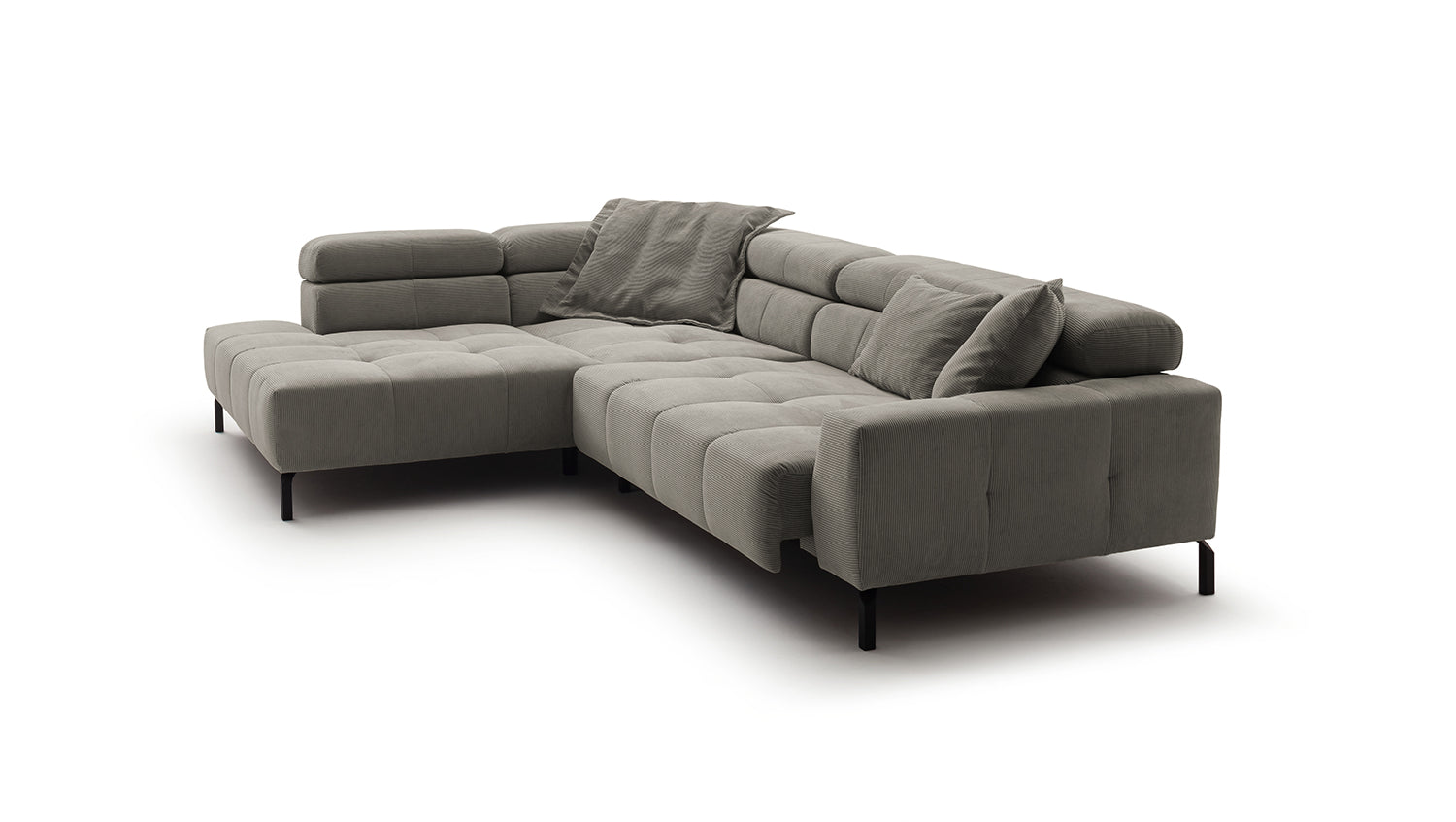 Descubra el elegante sofá esquinero OHIO de KAWOLA: la combinación perfecta de estilo y confort. La exclusiva Pana fina con acolchado integral confiere a su salón una elegancia atemporal. Disfrute de un confort de asiento de primera clase: el sofá ofrece un ajuste único de los reposacabezas: personalice su zona de asiento según sus necesidades, desde una suave inclinación hasta reposacabezas verticales. El sofá rinconero OHIO combina funcionalidad y diseño a la perfección. Gracias al confort de asiento de firmeza media, experimentará una mezcla ideal de apoyo y comodidad. La funda de pana no solo le da al sofá un aspecto cálido, sino que también le da un toque de estilo. Añada un toque de lujo y relajación a su hogar con el sofá rinconero OHIO de KAWOLA. Experimente un confort inigualable y un diseño atemporal: el hogar de sus sueños se hará realidad con este mueble único. Entrega sin cojines ni decoración