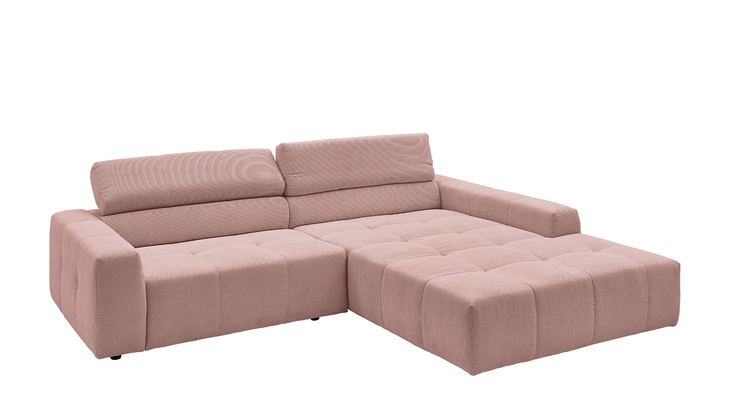 Descubra el elegante sofá esquinero RENO de KAWOLA, que impresiona por su funda de pana de alta calidad y el sofisticado ajuste del reposacabezas. La funda integral de pana de primera calidad confiere a este sofá esquinero un encanto atemporal y un tacto agradable. El respaldo ergonómico de espuma proporciona un confort adicional, mientras que la suspensión de muelles ondulados y la espuma PUR de la zona de asiento garantizan una agradable experiencia al sentarse. El innovador ajuste de los reposacabezas le permite inclinarlos individualmente o ponerlos en posición vertical para encontrar su posición de relajación personal. Con un confort de asiento de firmeza media, el sofá esquinero RENO ofrece la combinación perfecta de estilo y comodidad. Experimente la relajación pura en su salón con este cómodo y atractivo mueble. Entrega sin cojines ni decoración
