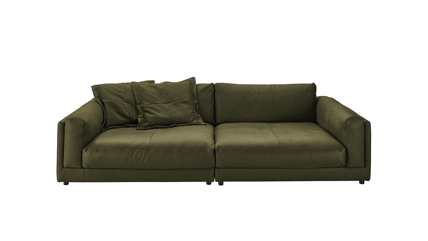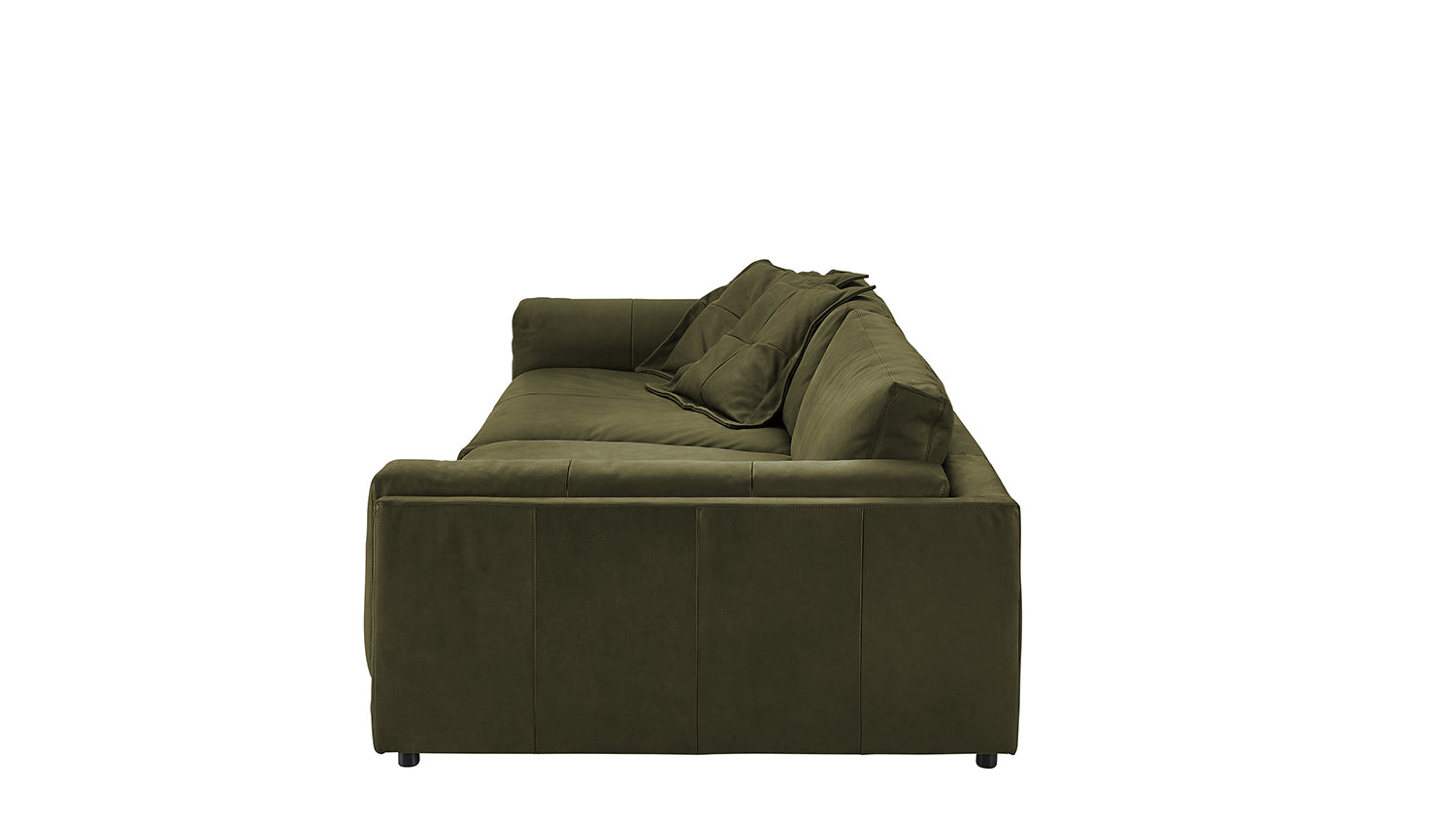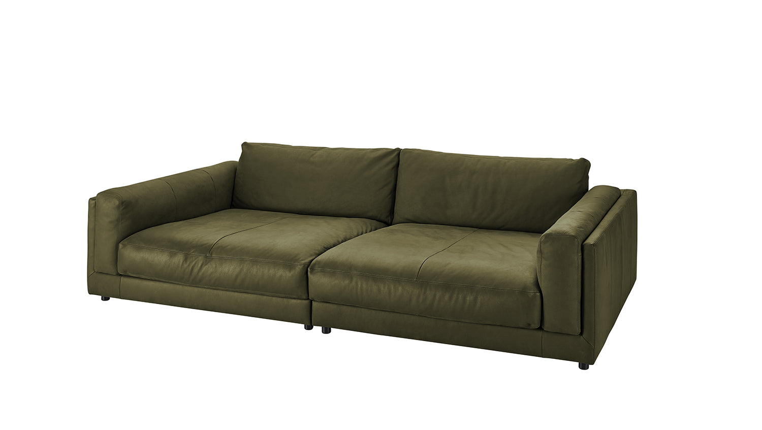 Sofá grande KAWOLA RAINA de cuero verde oliva