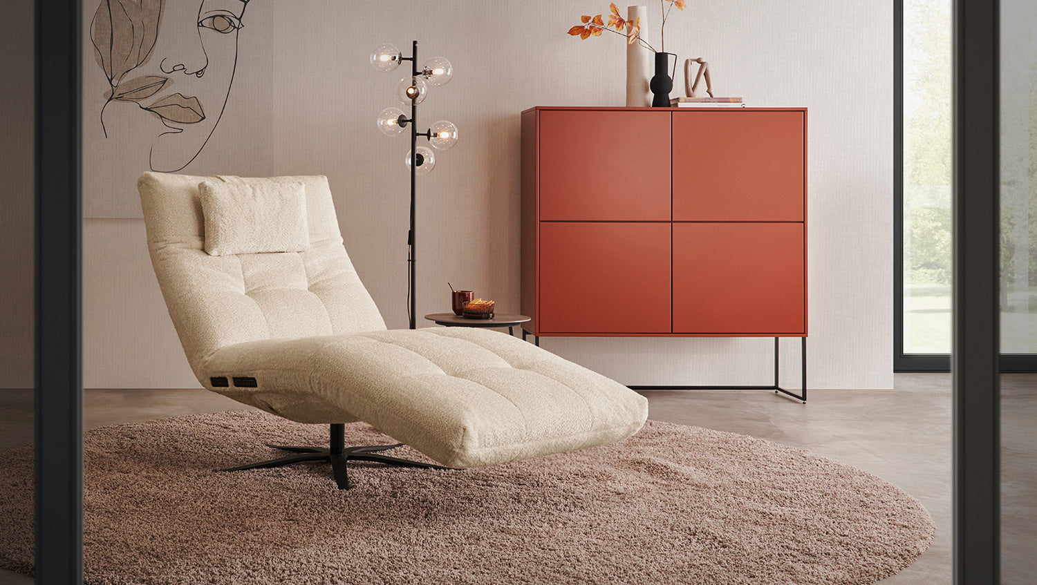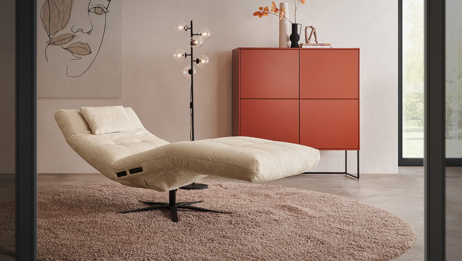 La tumbona LETICIA de KAWOLA combina un diseño elegante con el máximo confort. La elegante funda de tela con acabado integral confiere a la Chaise longue un aspecto de alta calidad y una agradable experiencia de asiento. Destaca especialmente la base giratoria de 360 grados, que permite la máxima flexibilidad. Gracias a la función de reclinación integrada, puede personalizar LETICIA y relajarse por completo. Cuando la función está totalmente extendida, se alcanza la posición de báscula cardíaca, en la que el corazón y los pies se encuentran en la misma posición. Esta posición optimiza la circulación sanguínea, alivia la presión sobre las piernas y es, por tanto, perfecta para relajarse. Ya sea para leer, ver la televisión o simplemente para desconectar, el sillón reclinable LETICIA es la elección perfecta para los amantes del estilo. Tenga en cuenta que el reposapiés y el respaldo no pueden utilizarse como asiento. El límite de carga para el reposapiés y el respaldo es de 30 kg.