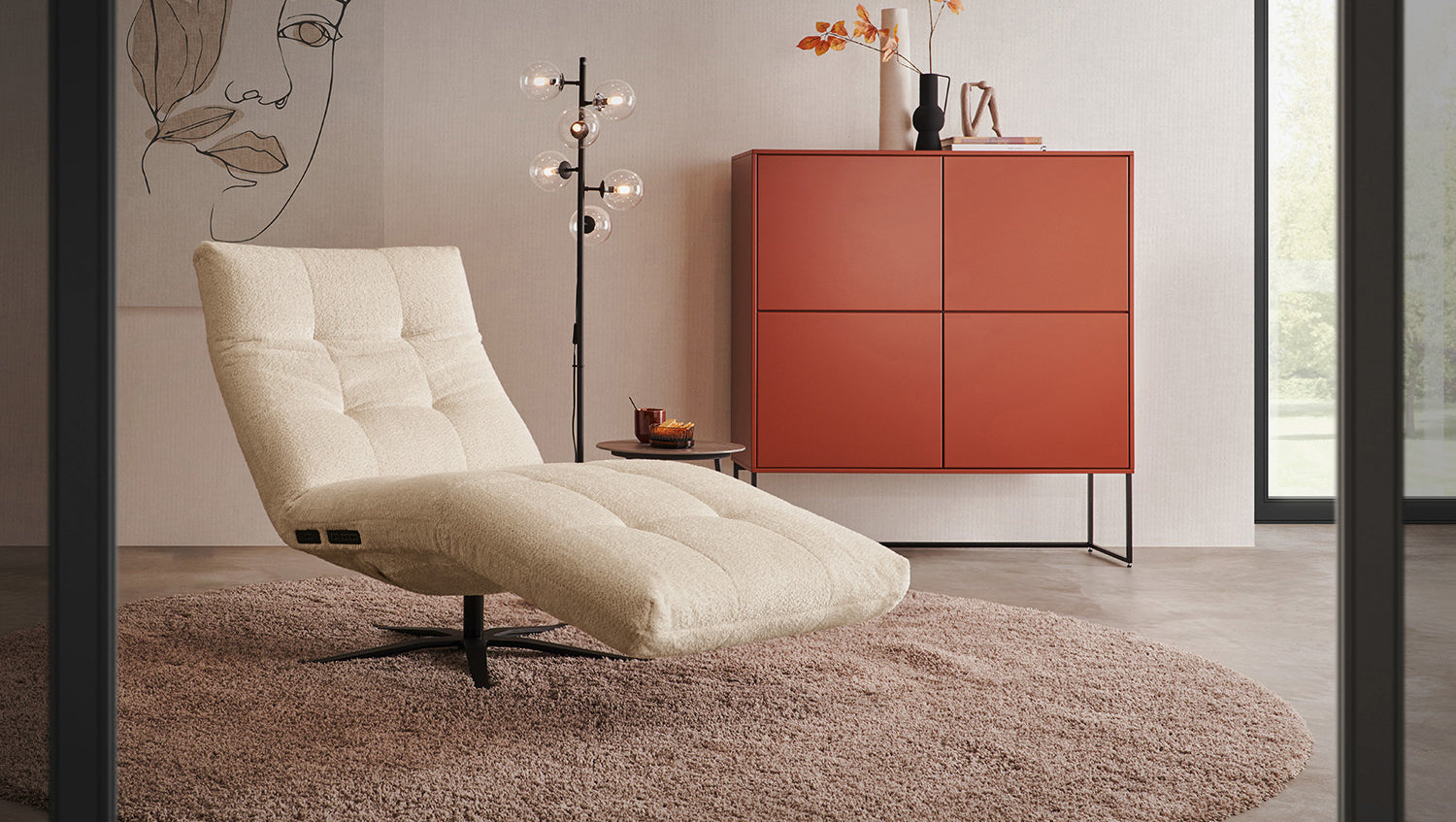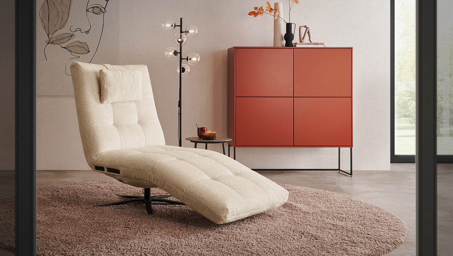 KAWOLA chaise longue LETICIA tela motorizada beige