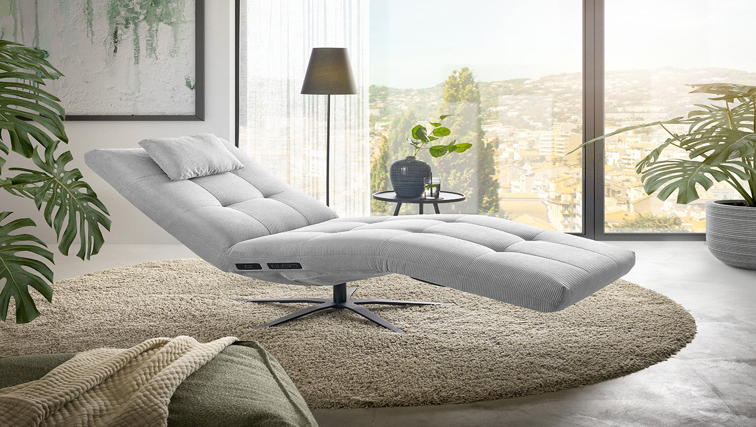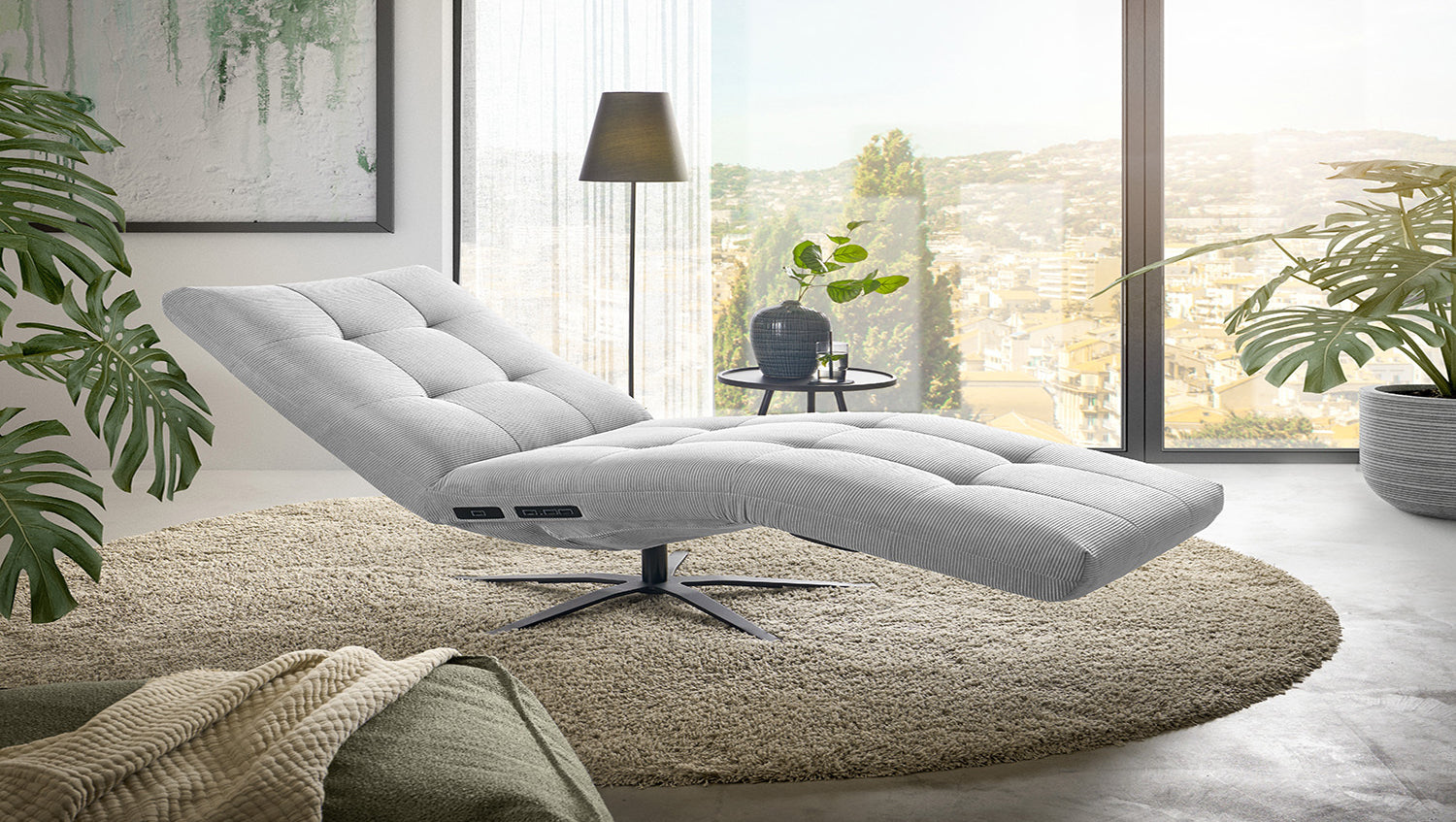 La chaise longue LETICIA de KAWOLA combina un diseño elegante con el máximo confort. El tapizado de elegante Pana fina con acabado integral confiere a la Chaise longue un aspecto de alta calidad y una agradable sensación al sentarse. Destaca especialmente la base giratoria de 360 grados, que permite la máxima flexibilidad. Gracias a la función de reclinación integrada, puede personalizar LETICIA y relajarse por completo. Cuando la función está totalmente extendida, se alcanza la posición de báscula cardíaca, en la que el corazón y los pies se encuentran en la misma posición. Esta posición optimiza la circulación sanguínea, alivia la presión sobre las piernas y es, por tanto, perfecta para relajarse. Ya sea para leer, ver la televisión o simplemente para desconectar, el sillón reclinable LETICIA es la elección perfecta para los amantes del estilo. Tenga en cuenta que el reposapiés y el respaldo no pueden utilizarse como asiento. El límite de carga para el reposapiés y el respaldo es de 30 kg.